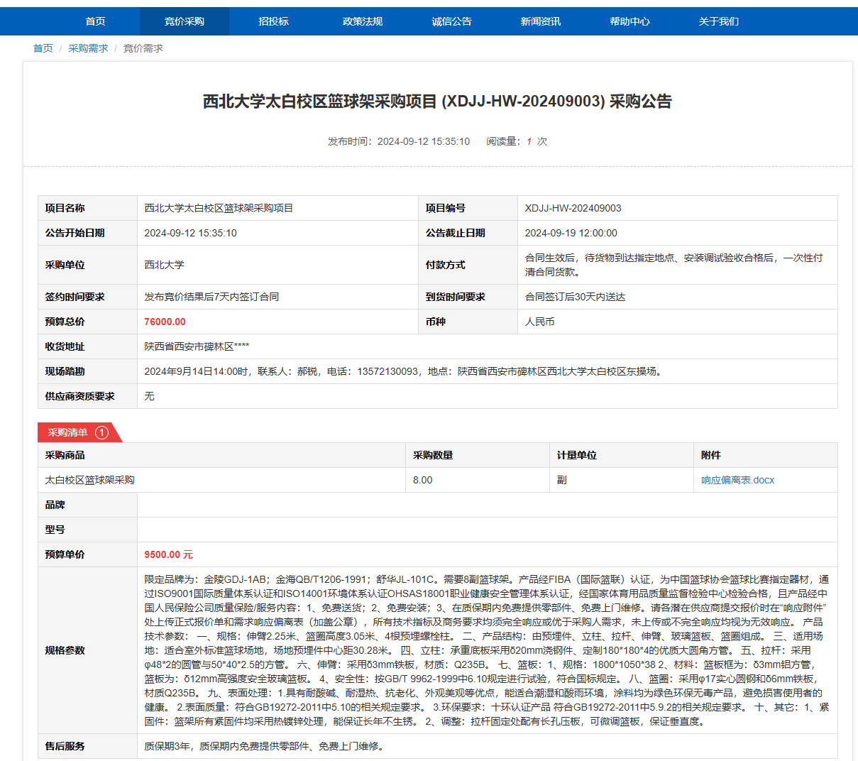 米兰买球太白校区篮球架采购项目 (XDJJ-HW-202409003)竞价采购公告 作者: 编辑: 时间:2024-09-12 原公告链接:https://www.ejingcai.com.cn/site/bidding/detail/12528