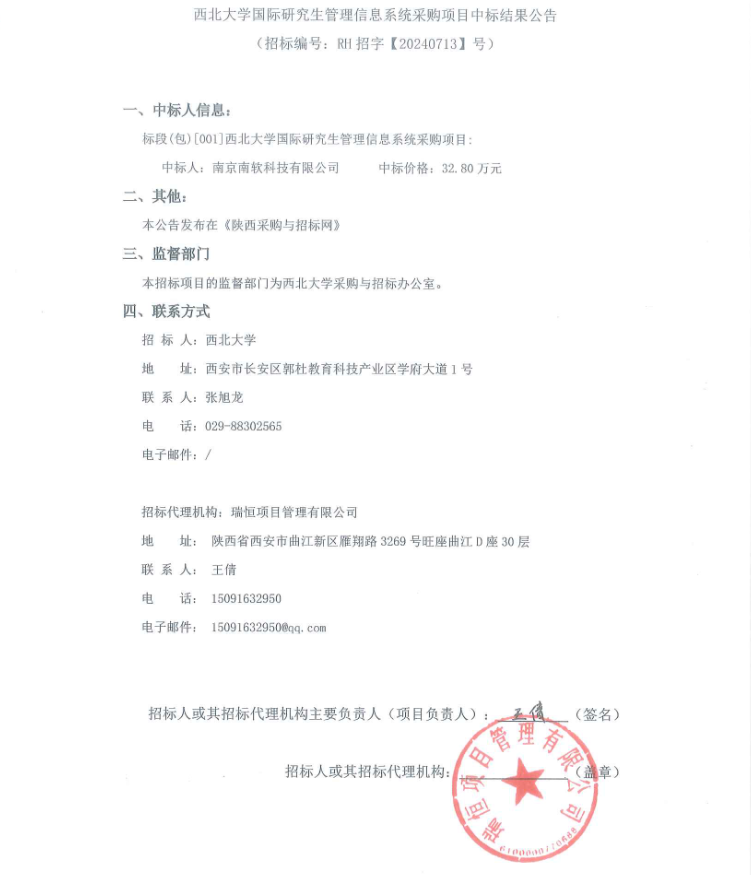 米兰买球国际研究生管理信息系统采购项目中标结果公告