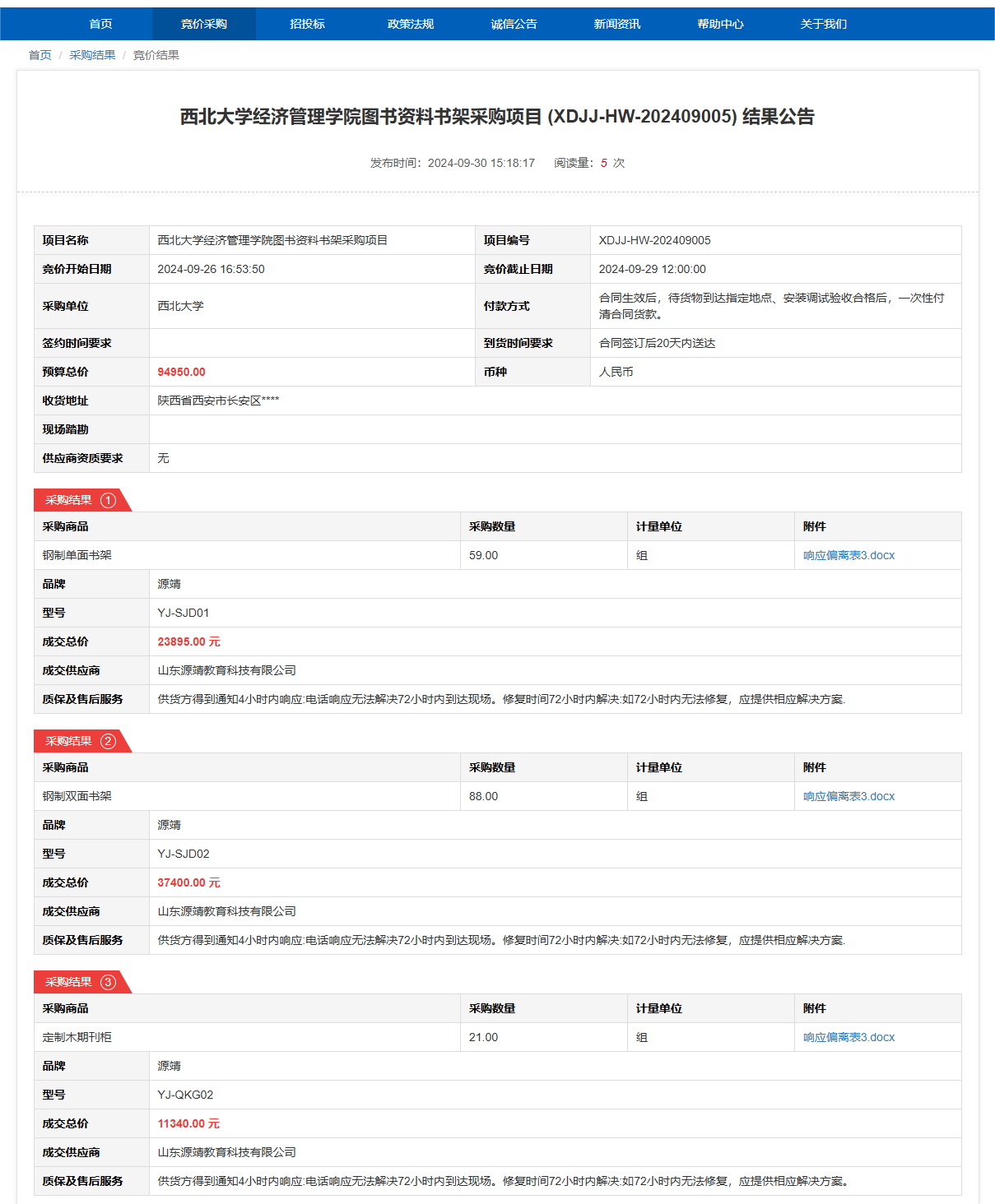 米兰买球经济管理学院图书资料书架采购项目(XDJJ-HW-202409005)竞价结果公告 作者: 编辑: 时间:2024-09-30 原公告链接:https://www.ejingcai.com.cn/site/bidding/detail/13023
