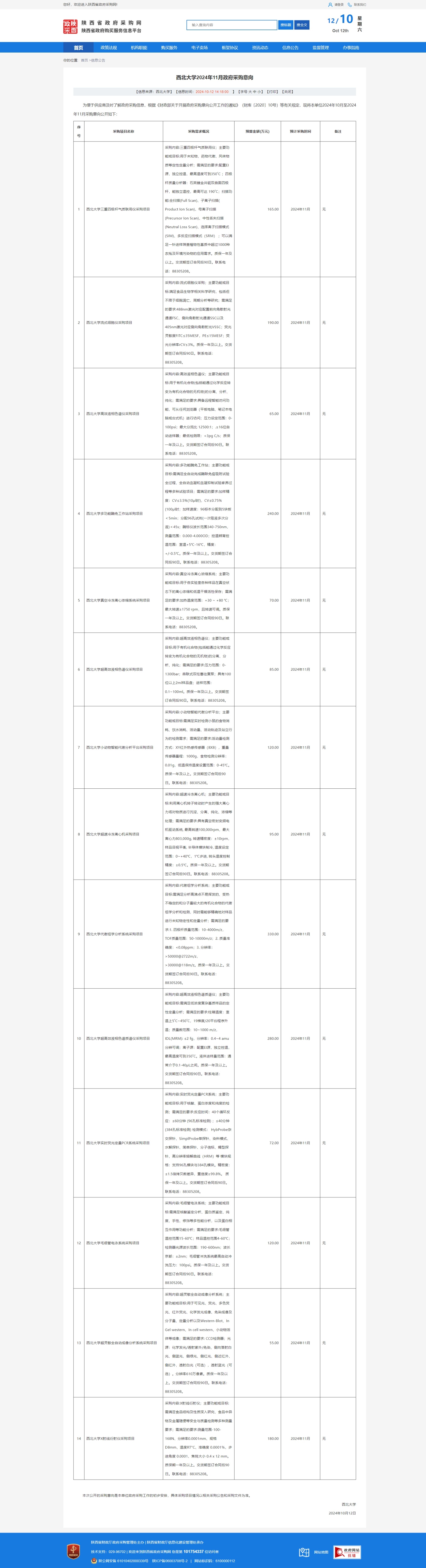米兰买球2024年11月政府采购意向(食品科学与工程学院) 作者: 编辑: 时间:2024-10-12 原公告链接:https://www.ccgp-shaanxi.gov.cn/freecms/site/shaanxi/ggxx/info/2024/8a69c95c927dd5a501927e27dae504f0.html?noticeType=59¬iceId=3cbc7a1c-8863-11ef-8063-08c0eb20c666