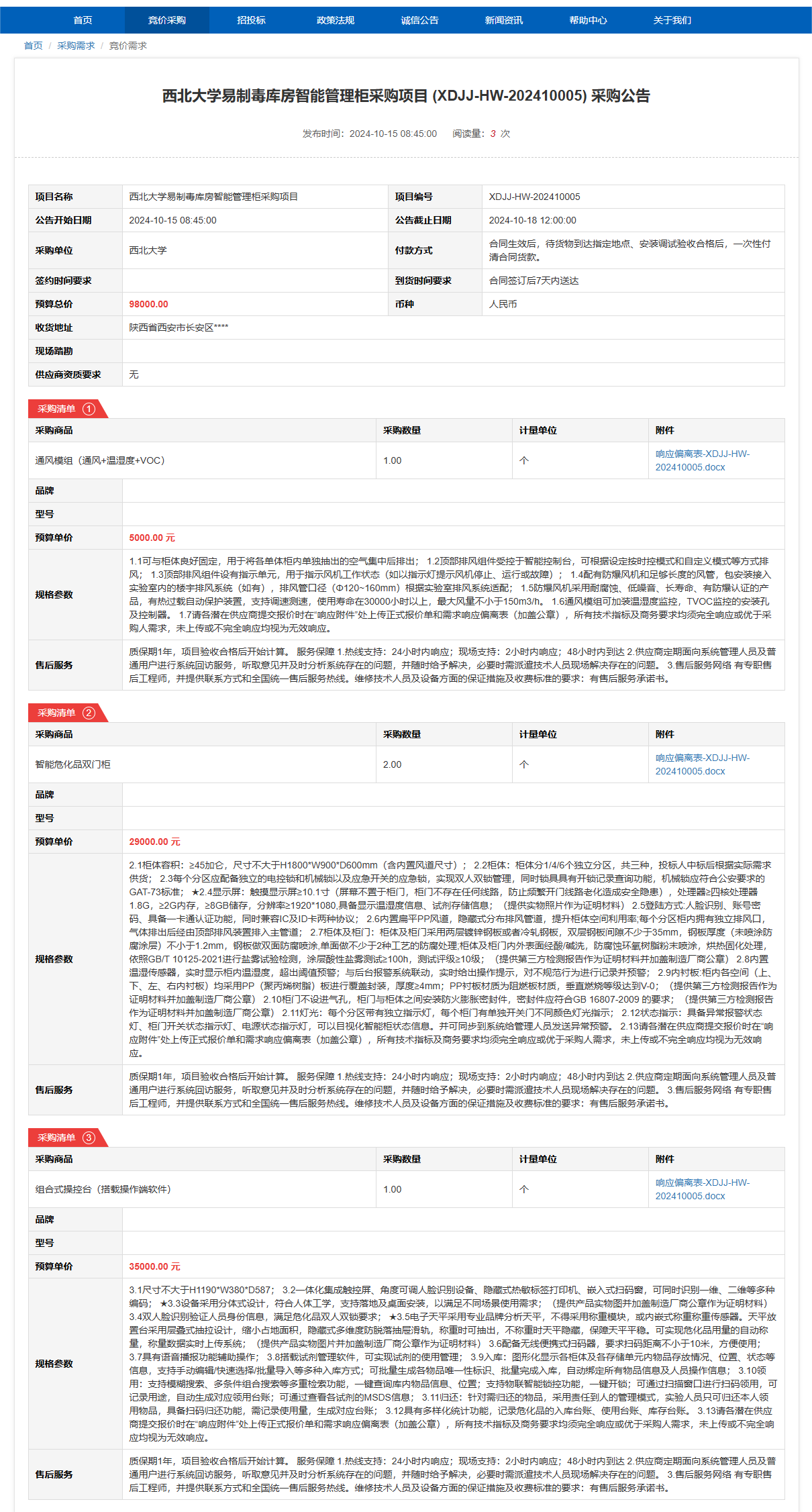 米兰买球易制毒库房智能管理柜采购项目(XDJJ-HW-202410005)竞价采购公告 作者:采购与招标办公室 编辑: 时间:2024-10-15 原公告链接:https://www.ejingcai.com.cn/site/bidding/detail/13297
