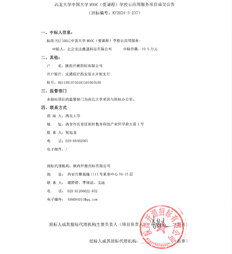 米兰买球中国大学MOOC(爱课程)学校云应用服务项目成交公告