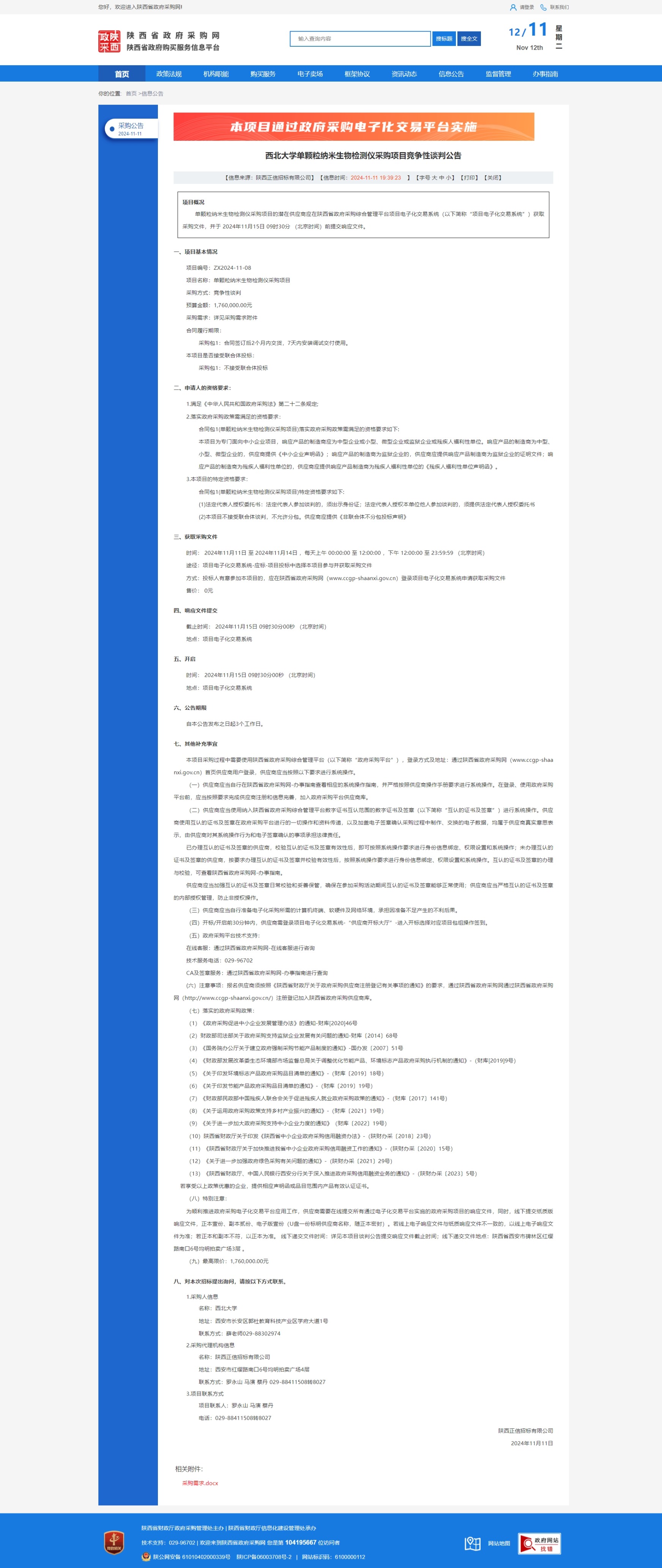 米兰买球单颗粒纳米生物检测仪采购项目竞争性谈判公告 作者: 编辑:薛利娟 时间:2024-11-12 原公告链接:https://www.ccgp-shaanxi.gov.cn/freecms/site/shaanxi/ggxx/info/2024/8a69c5a59218576d01931ae5a92607ad.html?noticeType=001013¬iceId=29519790-a023-11ef-8063-08c0eb20c666
