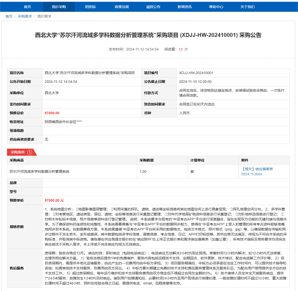 米兰买球“苏尔汗河流域多学科数据分析管理系统”采购项目(XDJJ-HW-202410001)竞价采购公告 作者:采购与招标办公室 编辑: 时间:2024-11-12 原公告链接:https://www.ejingcai.com.cn/site/bidding/detail/14753