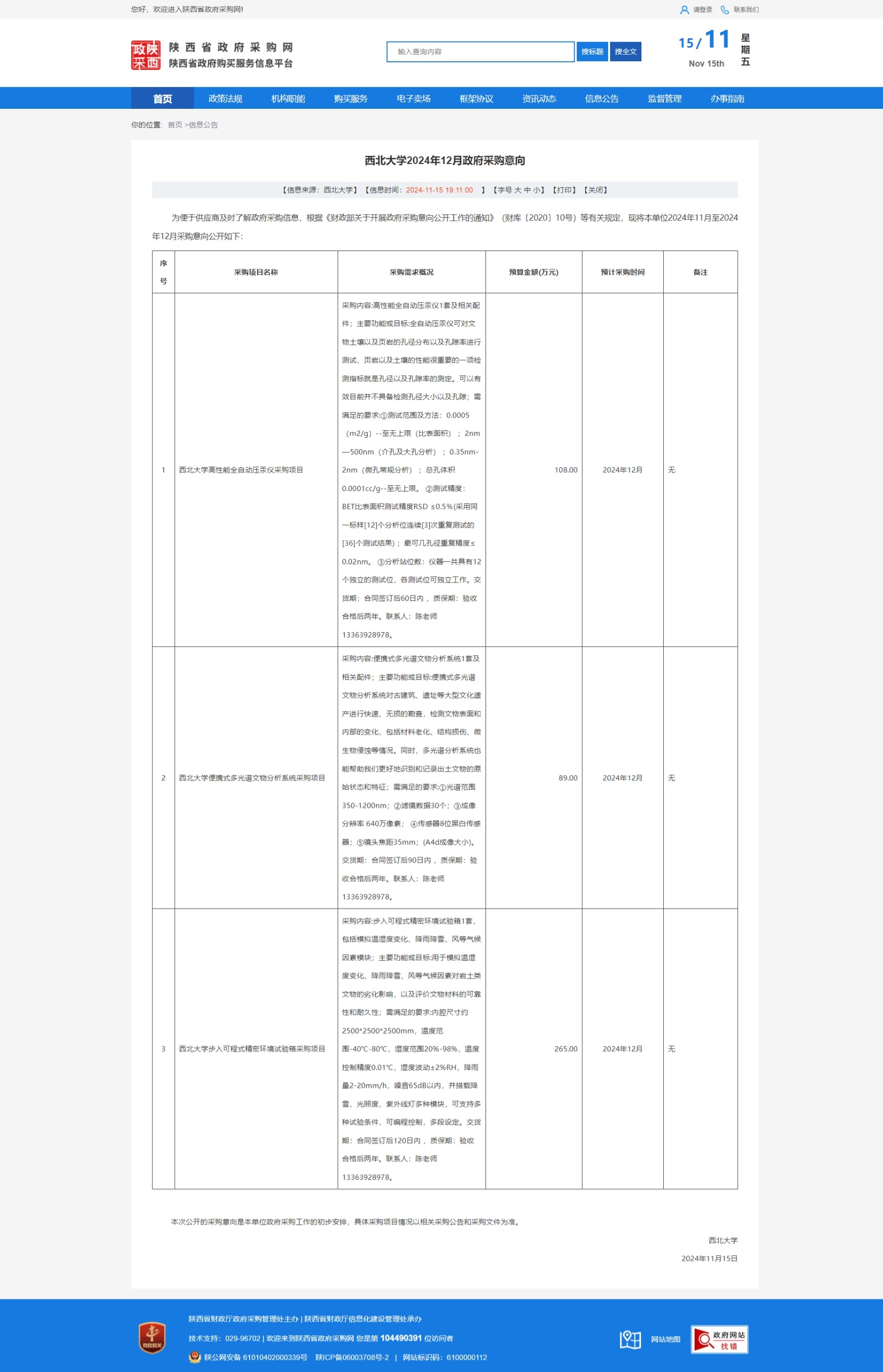 米兰买球2024年12月政府采购意向(丝绸之路文化遗产保护实验平台2) 作者: 编辑:薛利娟 时间:2024-11-15 原公告链接:https://www.ccgp-shaanxi.gov.cn/freecms/site/shaanxi/ggxx/info/2024/8a69c037932429a301932f7f7f544a1e.html?noticeType=59¬iceId=dd1c3365-a343-11ef-8063-08c0eb20c666