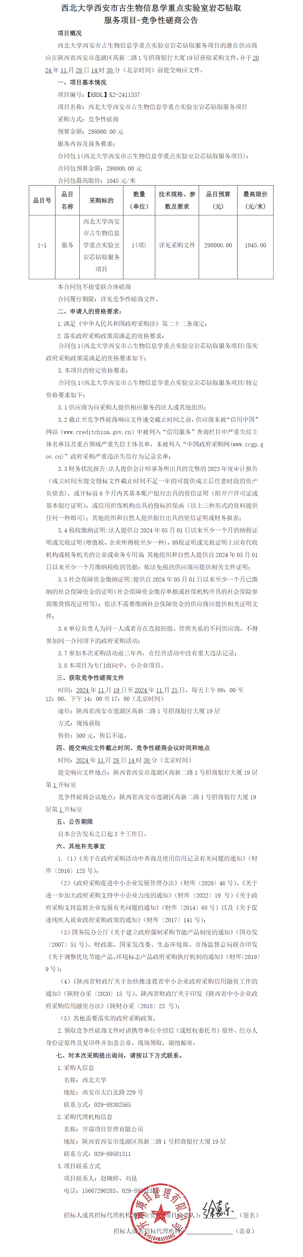 米兰买球西安市古生物信息学重点实验室岩芯钻取服务项目竞争性磋商公告