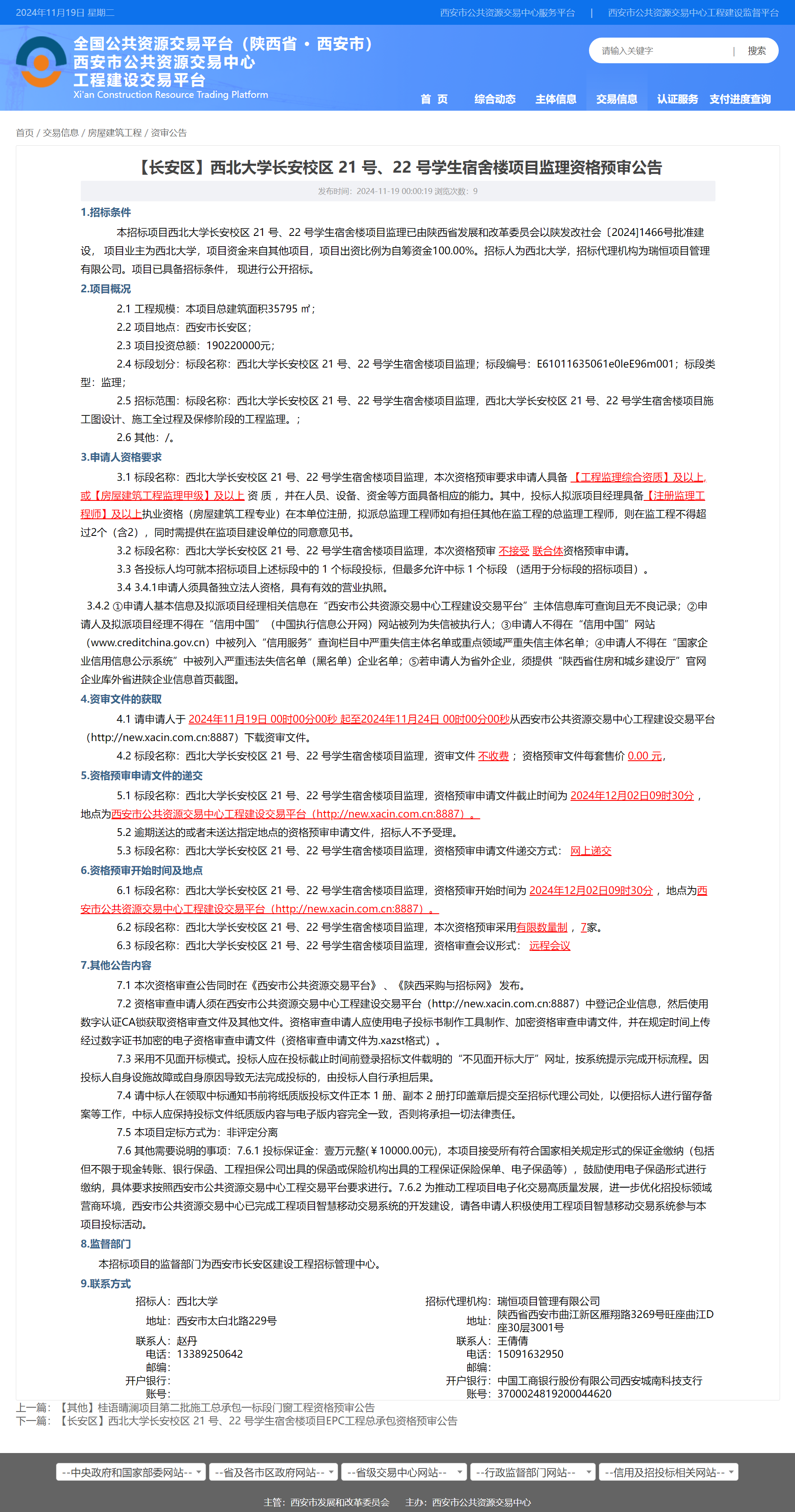 米兰买球长安校区 21 号、22 号学生宿舍楼项目监理资格预审公告