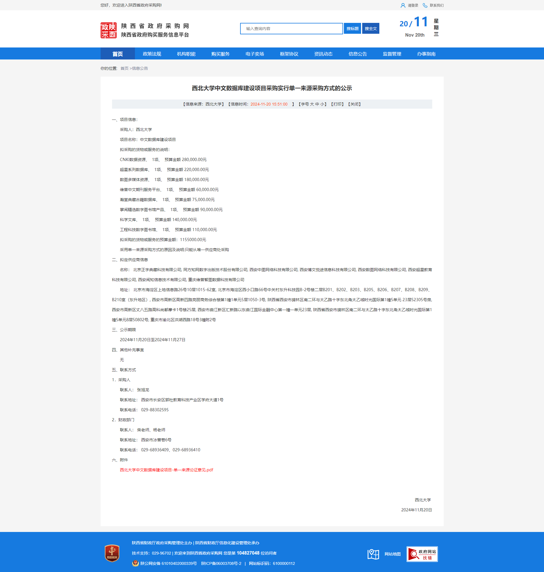 米兰买球中文数据库建设项目采购实行单一来源采购方式的公示