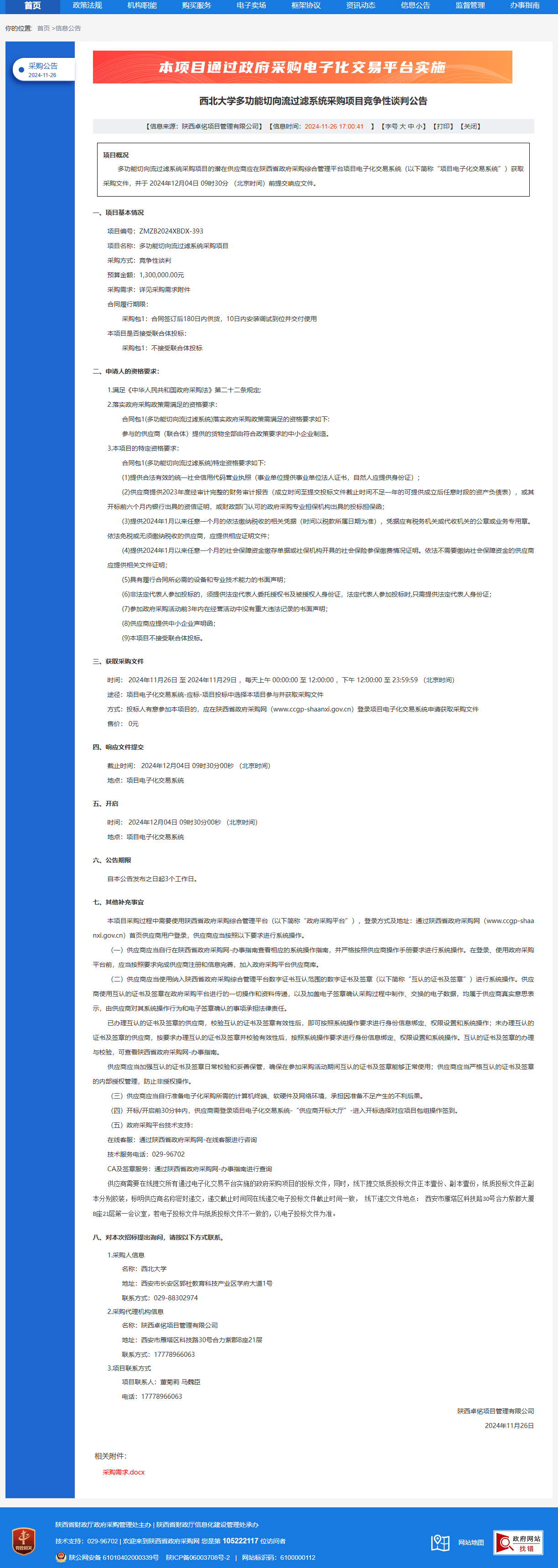 米兰买球多功能切向流过滤系统采购项目竞争性谈判公告 作者:采购与招标办公室 编辑: 时间:2024-11-26 原公告链接:https://www.ccgp-shaanxi.gov.cn/freecms/site/shaanxi/ggxx/info/2024/8a69c44e9218572b0193677ca4876f80.html?noticeType=001013¬iceId=80bc7ae0-abd6-11ef-8063-08c0eb20c666