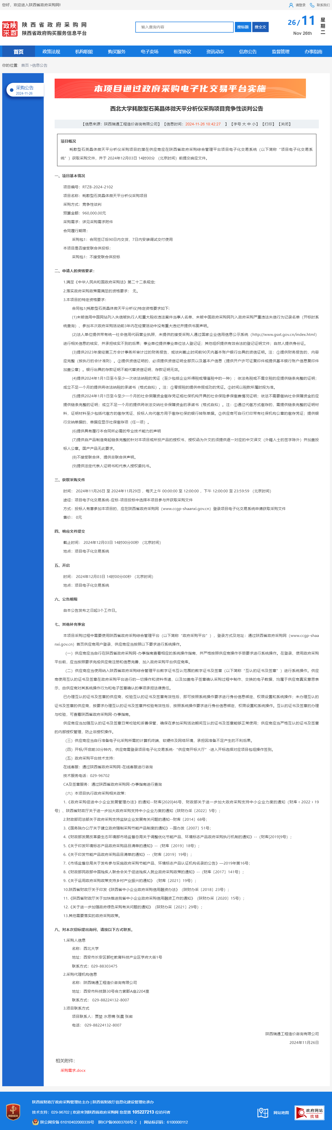 米兰买球耗散型石英晶体微天平分析仪采购项目竞争性谈判公告 作者:采购与招标办公室 编辑: 时间:2024-11-26 原公告链接:http://www.ccgp-shaanxi.gov.cn/freecms/site/shaanxi/ggxx/info/2024/8a69c251921857370193680865e86269.html?noticeType=001013¬iceId=b80e3459-abe4-11ef-8063-08c0eb20c666
