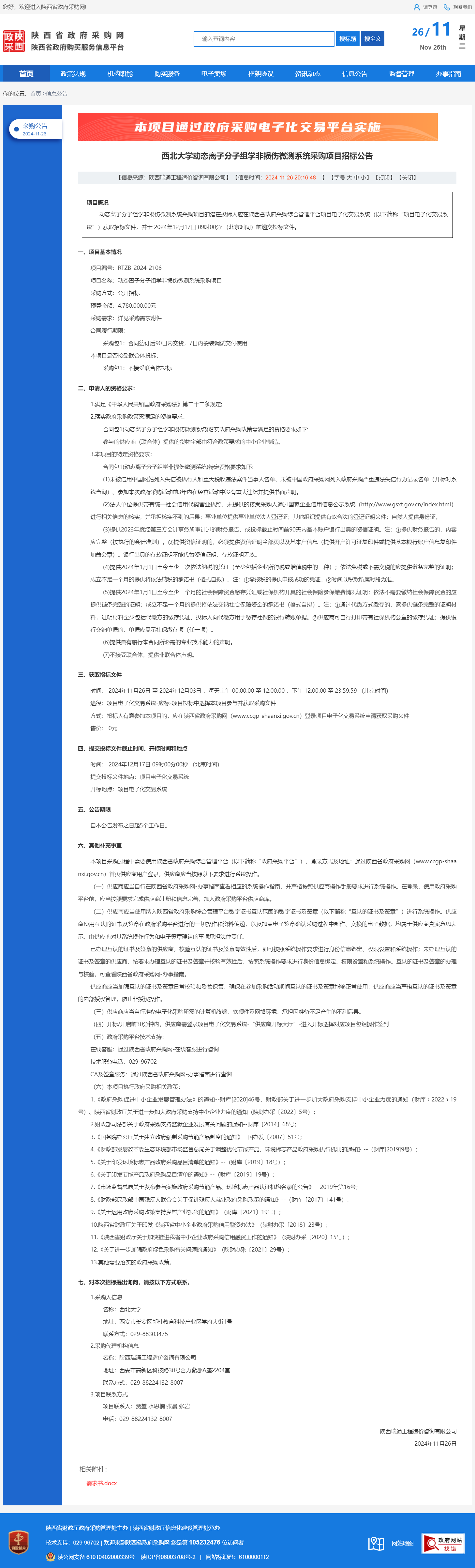 米兰买球动态离子分子组学非损伤微测系统采购项目招标公告 作者:采购与招标办公室 编辑: 时间:2024-11-26 原公告链接:http://www.ccgp-shaanxi.gov.cn/freecms/site/shaanxi/ggxx/info/2024/8a69c95d921859f00193685d31243738.html?noticeType=001011¬iceId=e6602f79-abf1-11ef-8063-08c0eb20c666