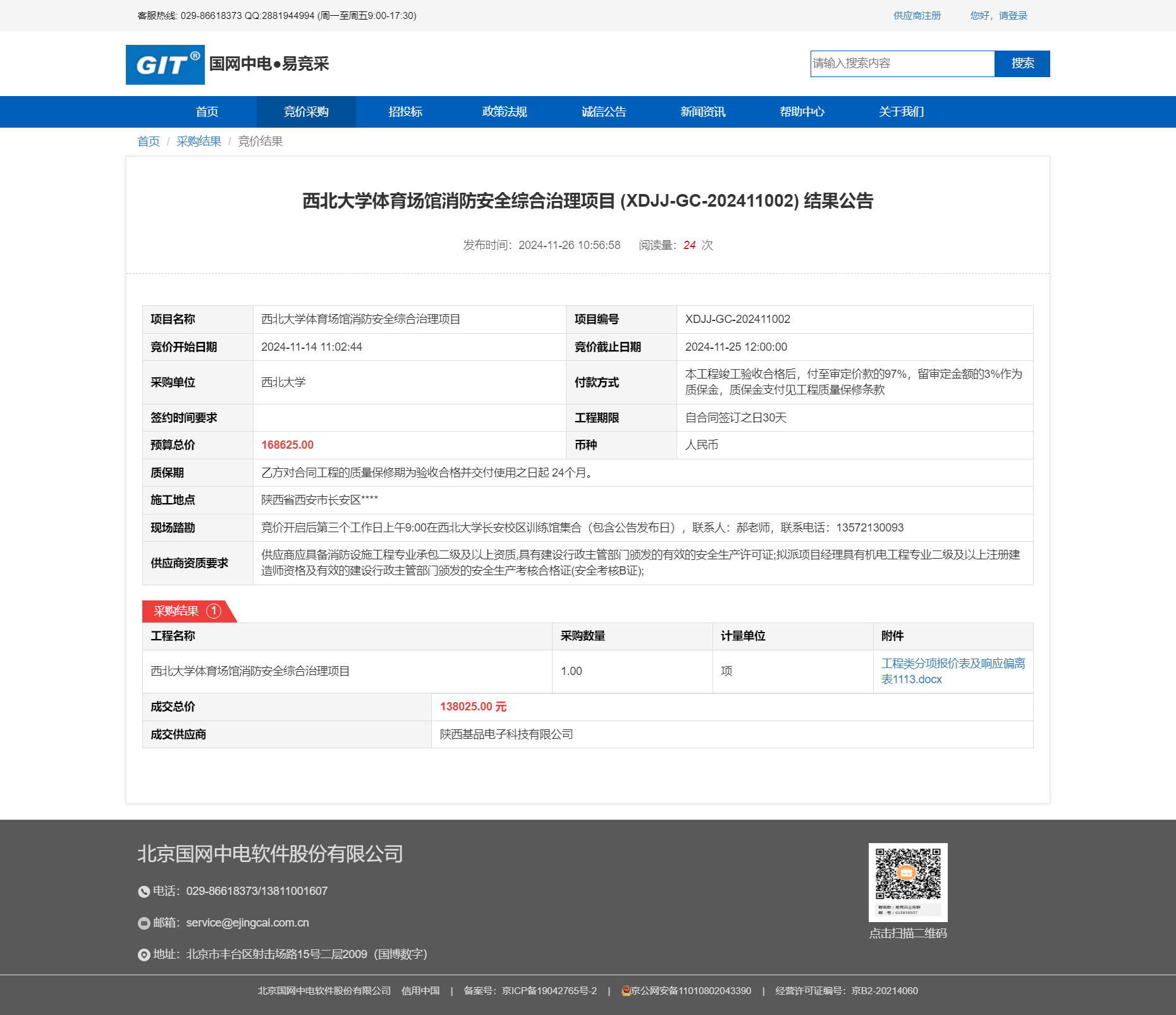 米兰买球体育场馆消防安全综合治理项目 (XDJJ-GC-202411002) 结果公告