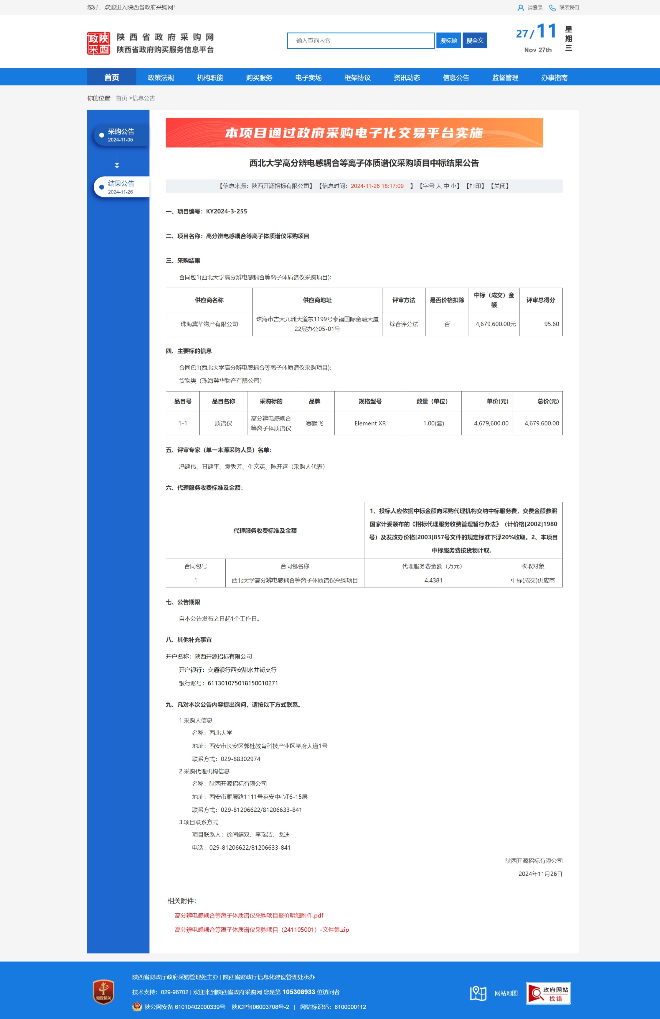 米兰买球高分辨电感耦合等离子体质谱仪采购项目中标结果公告 作者: 编辑:薛利娟 时间:2024-11-27 原公告链接:https://www.ccgp-shaanxi.gov.cn/freecms/site/shaanxi/ggxx/info/2024/8a69c44e9218572b019367f1f6a41b05.html?noticeType=001021¬iceId=2f51259d-abe1-11ef-8063-08c0eb20c666