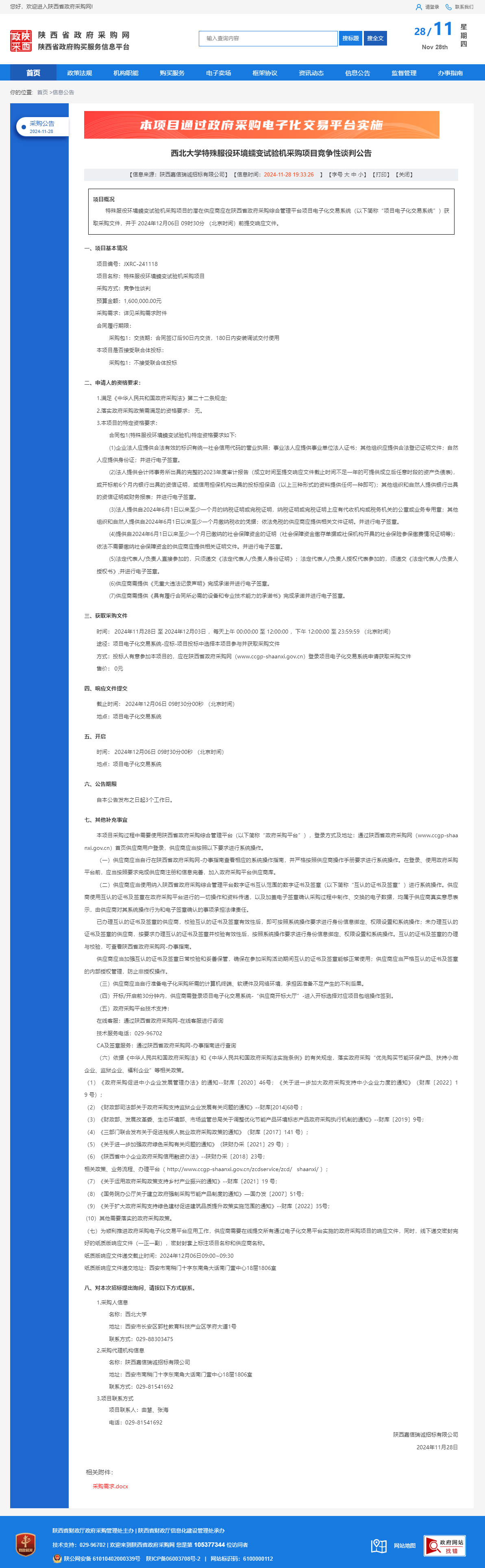 米兰买球特殊服役环境蠕变试验机采购项目竞争性谈判公告 作者:采购与招标办公室 编辑: 时间:2024-11-28 原公告链接:https://www.ccgp-shaanxi.gov.cn/freecms/site/shaanxi/ggxx/info/2024/8a69c251921857370193727b4a7b65d2.html?noticeType=001013¬iceId=2da54cc6-ad7e-11ef-8063-08c0eb20c666