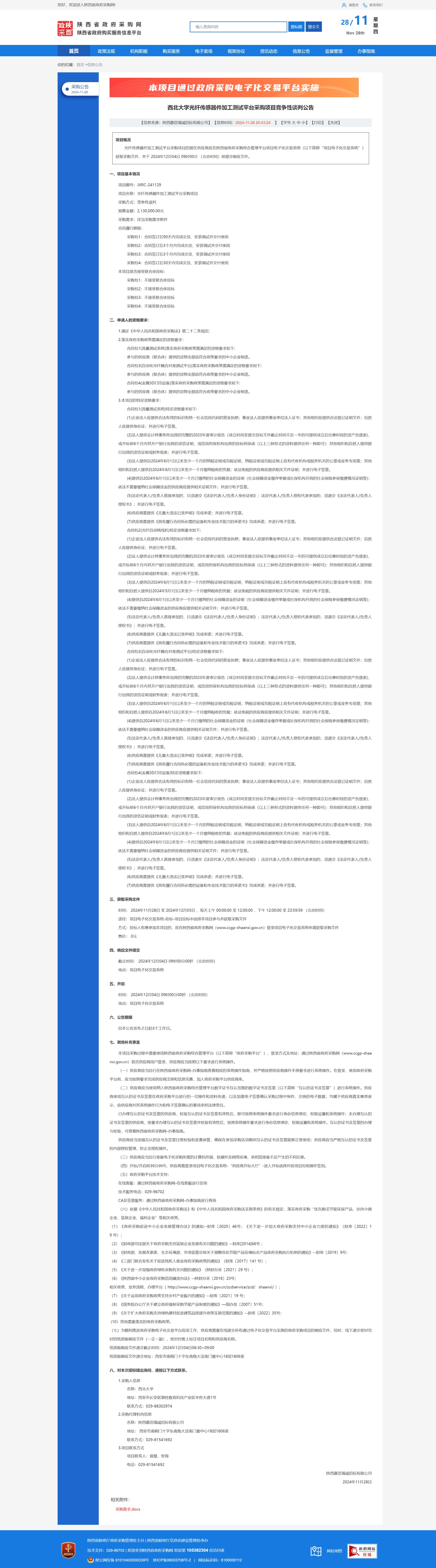 米兰买球光纤传感器件加工测试平台采购项目竞争性谈判公告 作者: 编辑:薛利娟 时间:2024-11-28 原公告链接:https://www.ccgp-shaanxi.gov.cn/freecms/site/shaanxi/ggxx/info/2024/8a69c95d921859f0019372bce9754d0c.html?noticeType=001013¬iceId=f3d424e2-ad87-11ef-8063-08c0eb20c666
