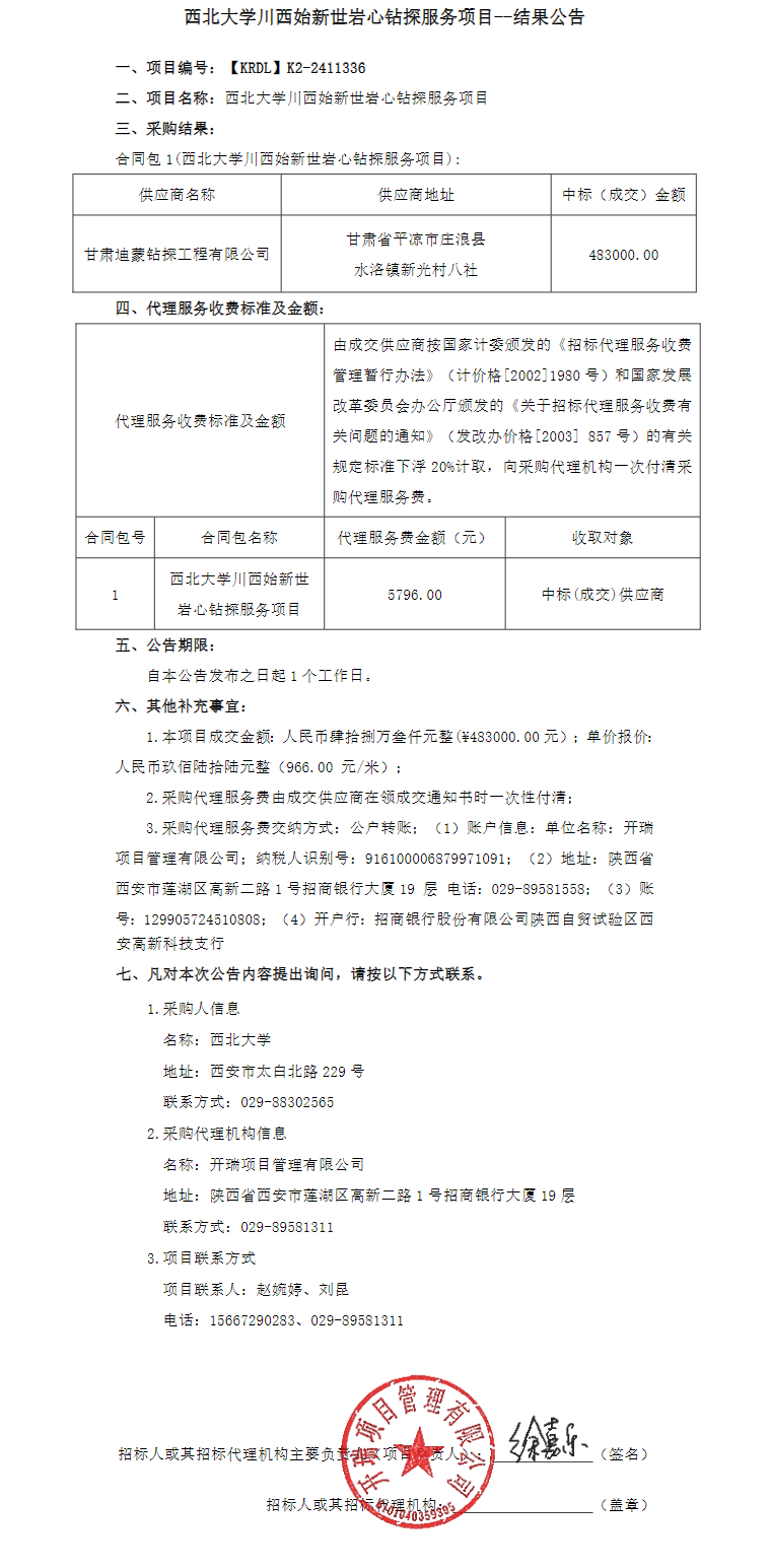 米兰买球西安市古生物信息学重点实验室岩芯钻取服务项目结果公告