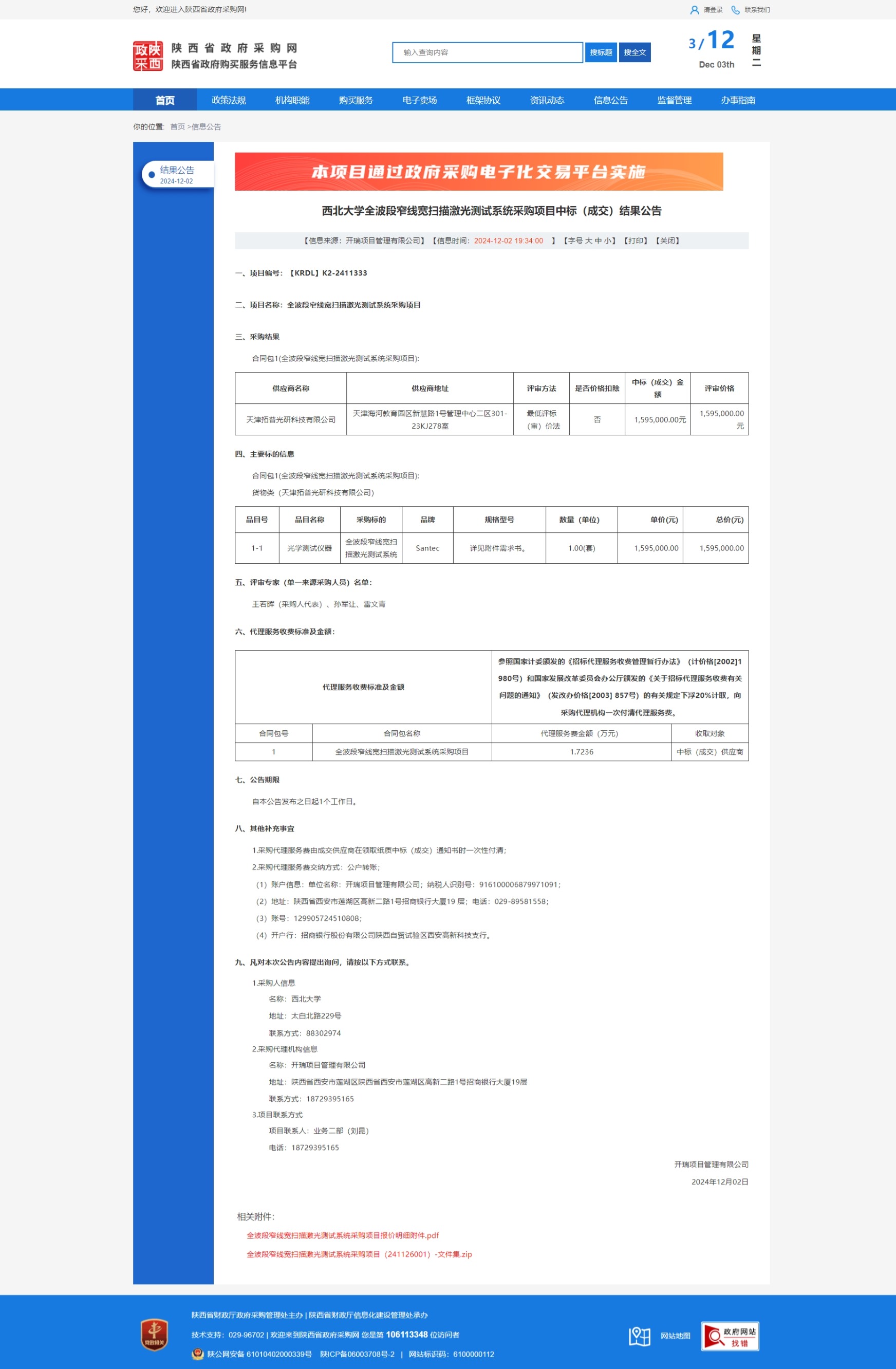 米兰买球全波段窄线宽扫描激光测试系统采购项目中标(成交)结果公告 作者: 编辑:薛利娟 时间:2024-12-03 原公告链接:https://www.ccgp-shaanxi.gov.cn/freecms/site/shaanxi/ggxx/info/2024/8a69c25192185737019387129cff6e5b.html?noticeType=001025¬iceId=ed669128-b0a2-11ef-8063-08c0eb20c666