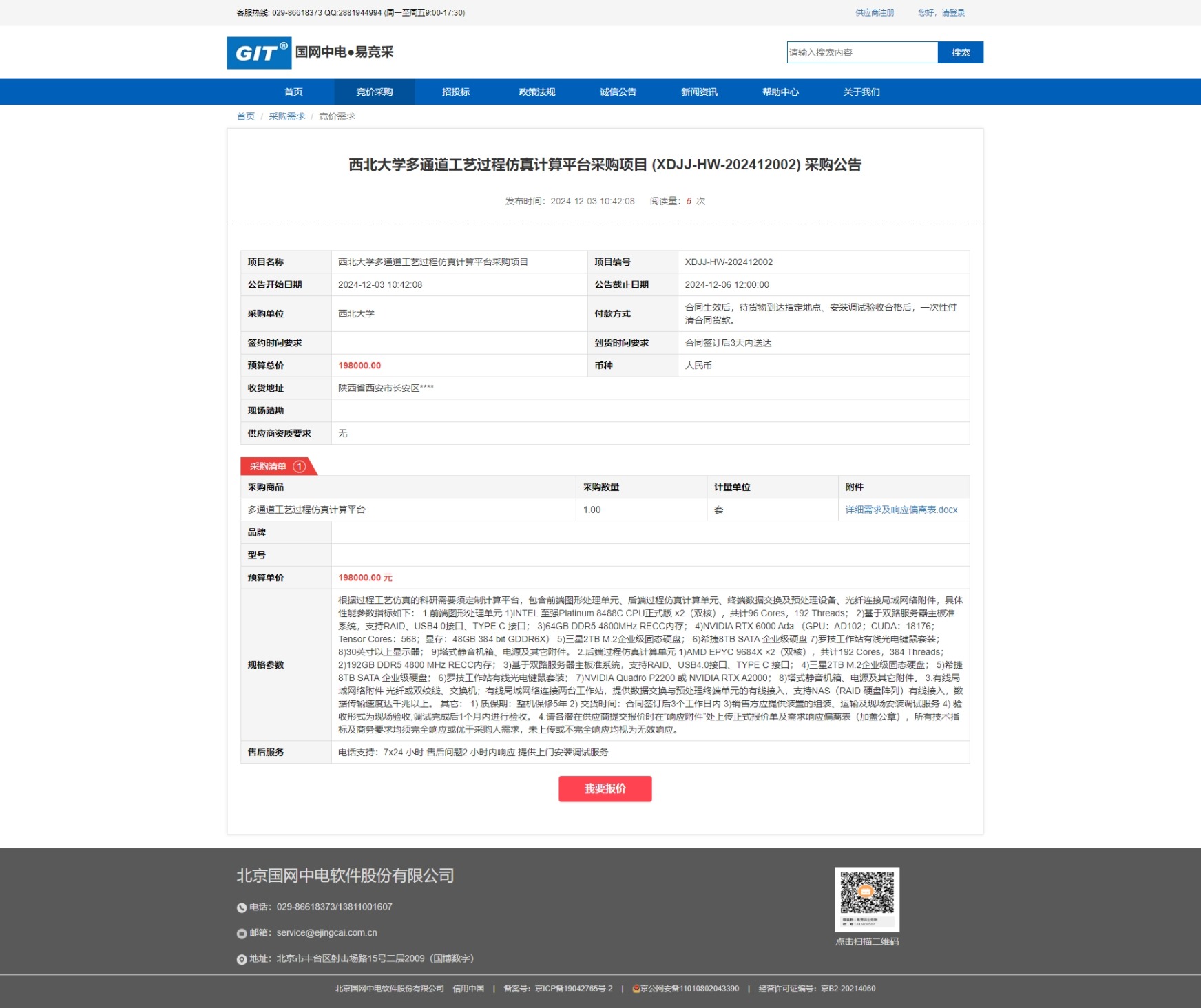 米兰买球多通道工艺过程仿真计算平台采购项目 (XDJJ-HW-202412002) 竞价采购公告 作者: 编辑:薛利娟 时间:2024-12-03 原公告链接:https://www.ejingcai.com.cn/site/bidding/detail/15600