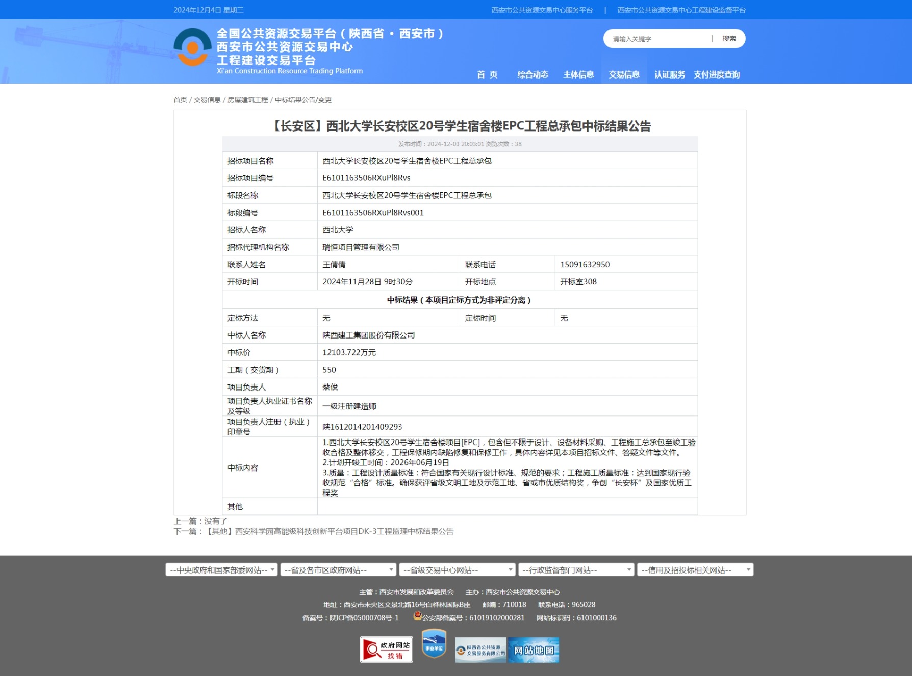 米兰买球长安校区20号学生宿舍楼EPC工程总承包中标结果公告