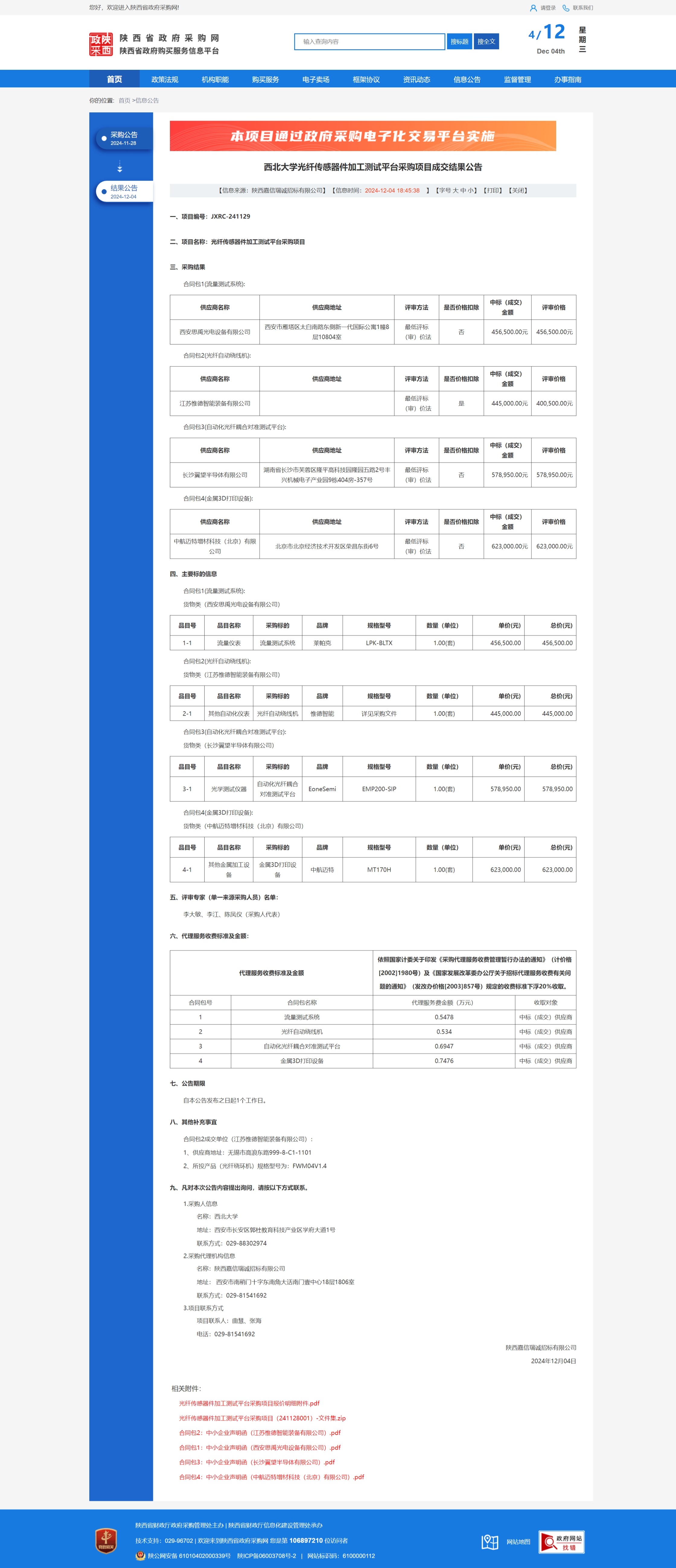 米兰买球光纤传感器件加工测试平台采购项目成交结果公告 作者: 编辑:薛利娟 时间:2024-12-04 原公告链接:https://www.ccgp-shaanxi.gov.cn/freecms/site/shaanxi/ggxx/info/2024/8a69c44e9218572b01939102d4831058.html?noticeType=001023¬iceId=81946fcd-b22e-11ef-8063-08c0eb20c666
