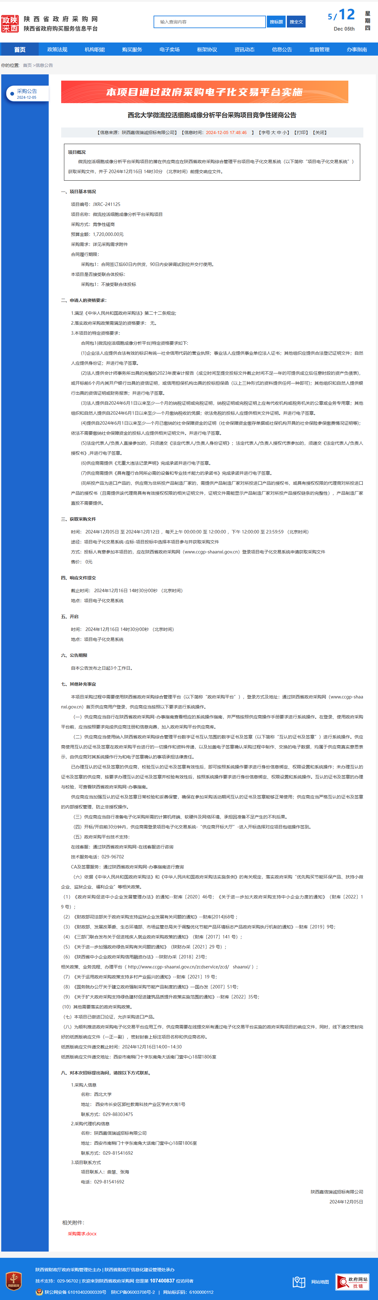 米兰买球微流控活细胞成像分析平台采购项目竞争性磋商公告 作者:采购与招标办公室 编辑: 时间:2024-12-05 原公告链接:https://www.ccgp-shaanxi.gov.cn/freecms/site/shaanxi/ggxx/info/2024/8a69c5a59218576d0193962b8b5f7d27.html?noticeType=001016¬iceId=ba5283be-b2ef-11ef-8063-08c0eb20c666