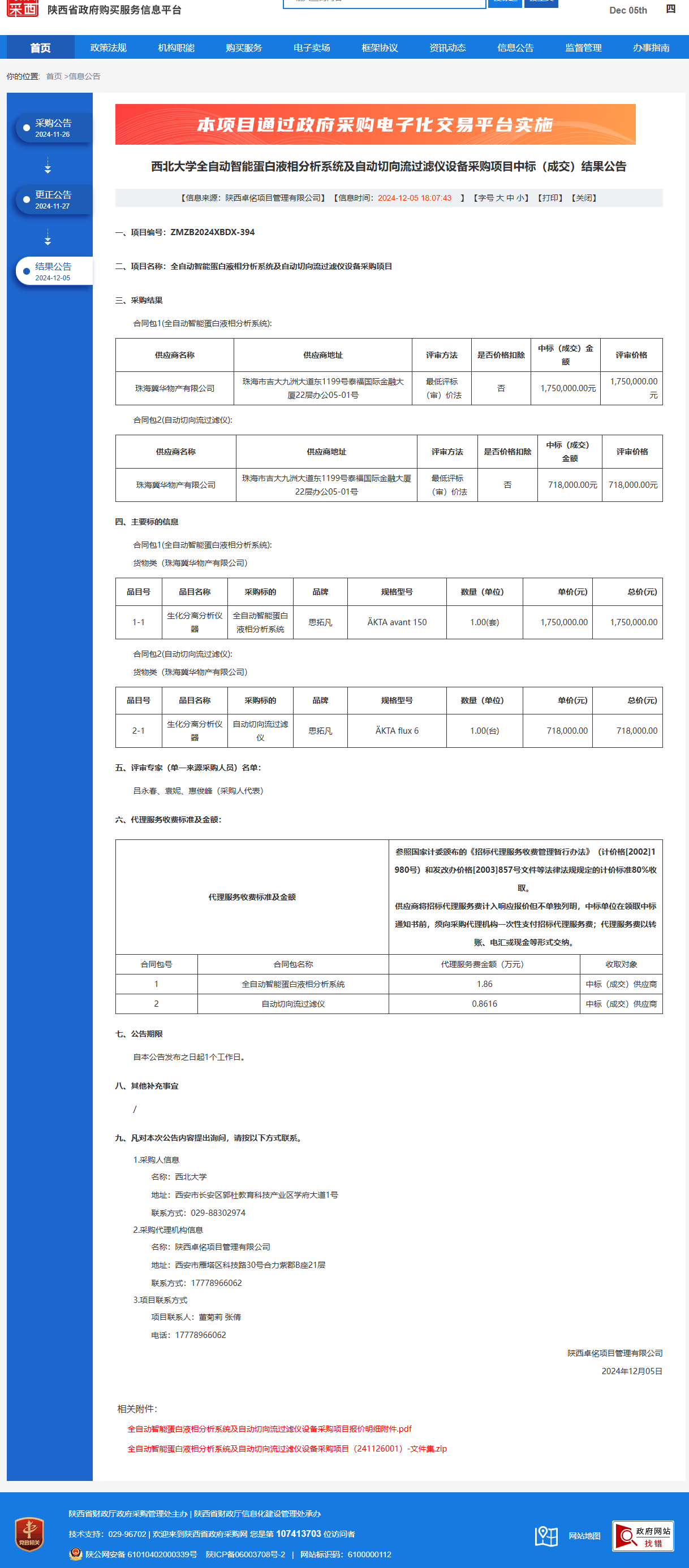 米兰买球全自动智能蛋白液相分析系统及自动切向流过滤仪设备采购项目中标(成交)结果公告 作者:采购与招标办公室 编辑: 时间:2024-12-05 原公告链接:https://www.ccgp-shaanxi.gov.cn/freecms/site/shaanxi/ggxx/info/2024/8a69c44e9218572b01939643fffe267c.html?noticeType=001023¬iceId=5fe3fe15-b2f2-11ef-8063-08c0eb20c666