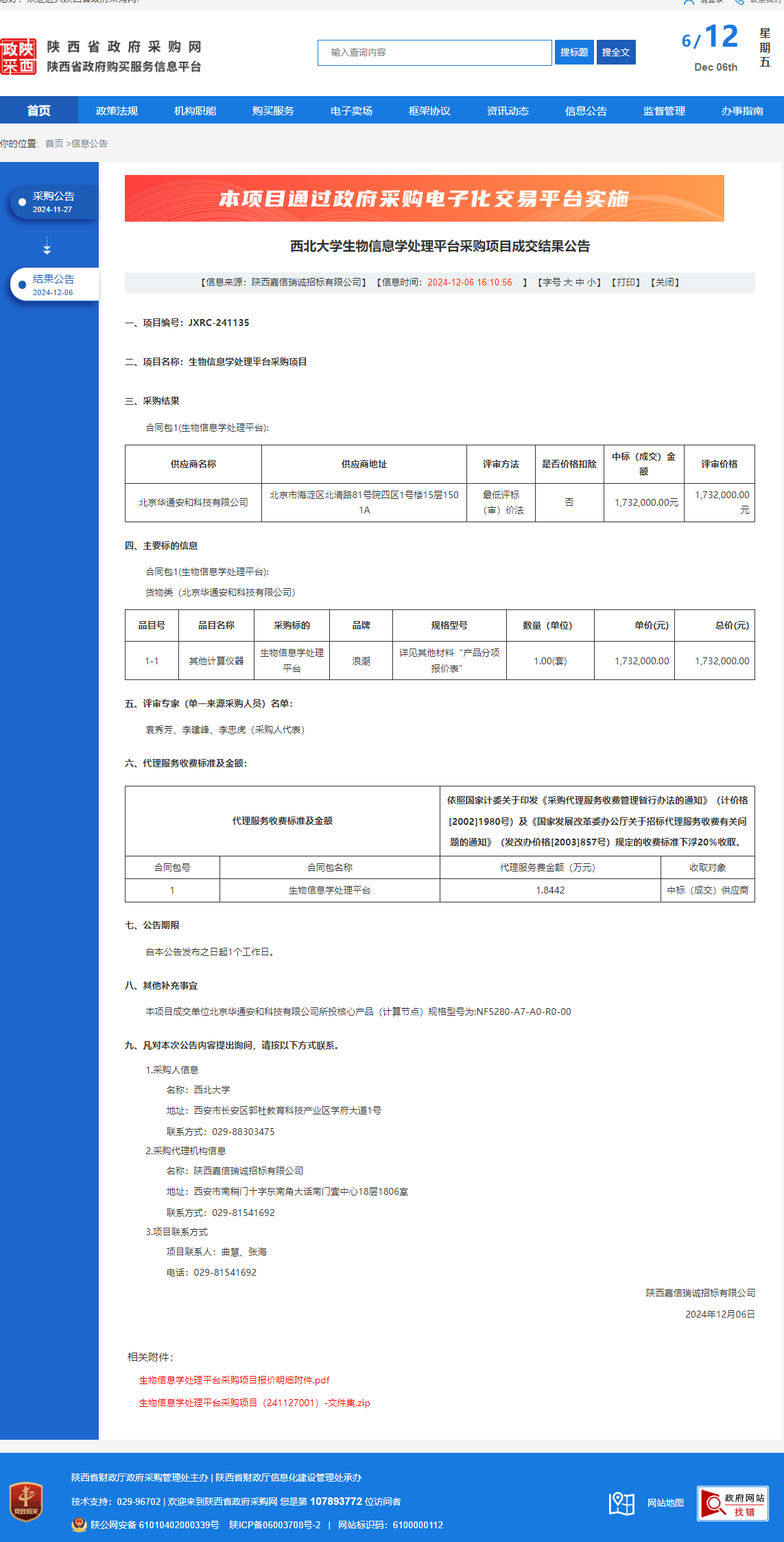 米兰买球生物信息学处理平台采购项目成交结果公告 作者:采购与招标办公室 编辑: 时间:2024-12-06 原公告链接:https://www.ccgp-shaanxi.gov.cn/freecms/site/shaanxi/ggxx/info/2024/8a69c5a59218576d01939ab2d6091195.html?noticeType=001023¬iceId=3a640688-b3ab-11ef-8063-08c0eb20c666
