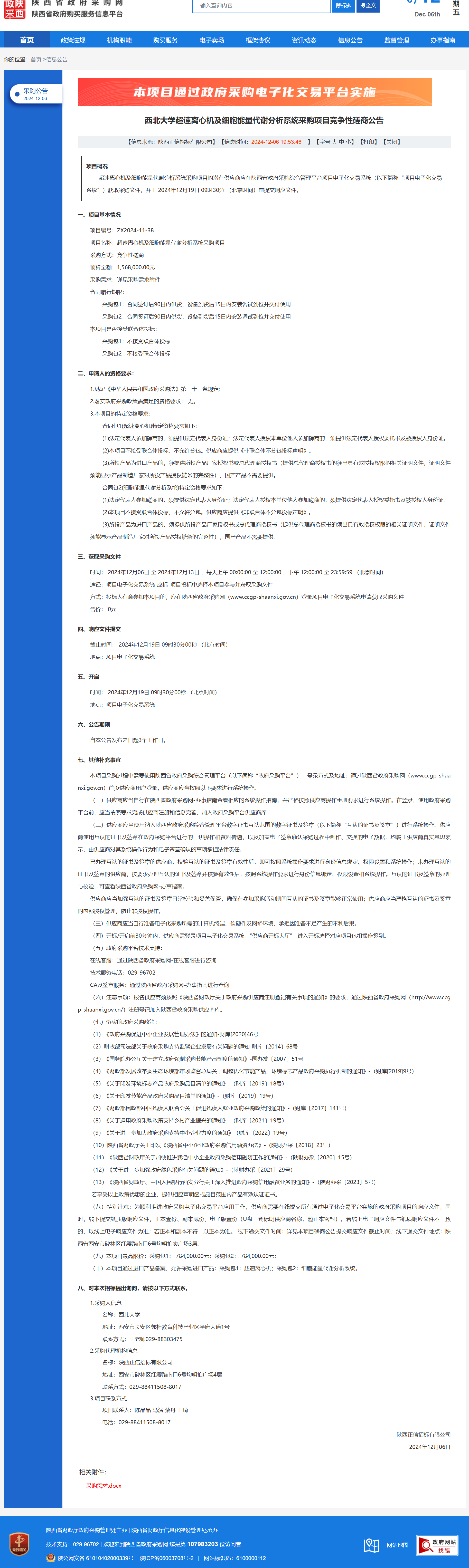 米兰买球超速离心机及细胞能量代谢分析系统采购项目竞争性磋商公告 作者:采购与招标办公室 编辑: 时间:2024-12-06 原公告链接:https://www.ccgp-shaanxi.gov.cn/freecms/site/shaanxi/ggxx/info/2024/8a69c5a59218576d01939bb6350f3f92.html?noticeType=001016¬iceId=5be8bcca-b3ca-11ef-8063-08c0eb20c666