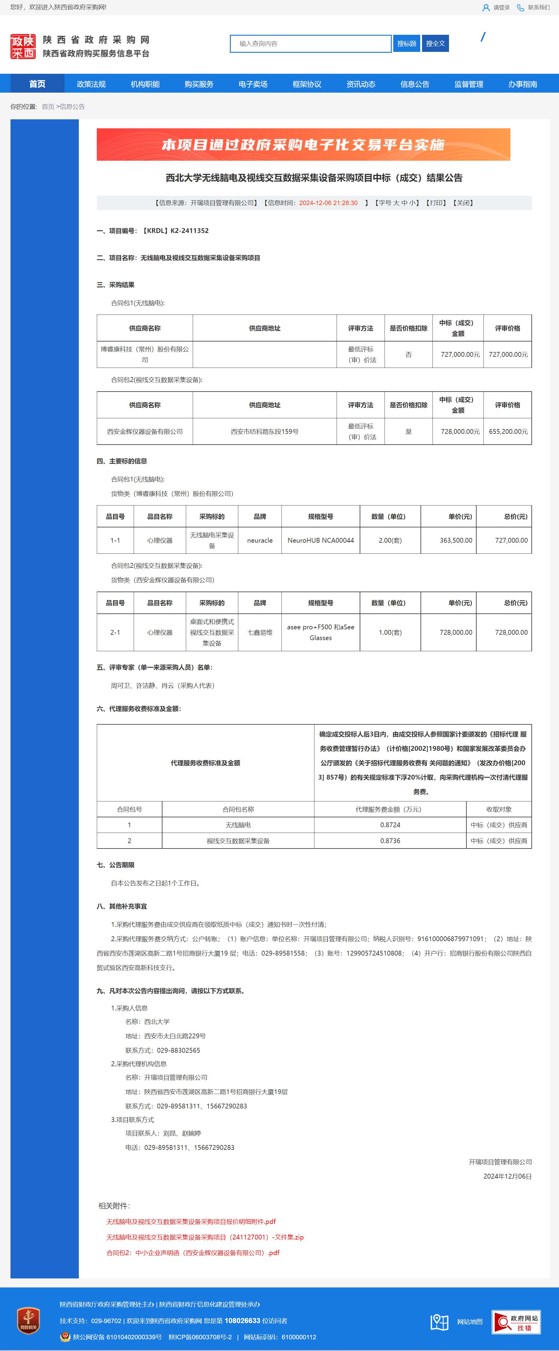 米兰买球无线脑电及视线交互数据采集设备采购项目中标(成交)结果公告