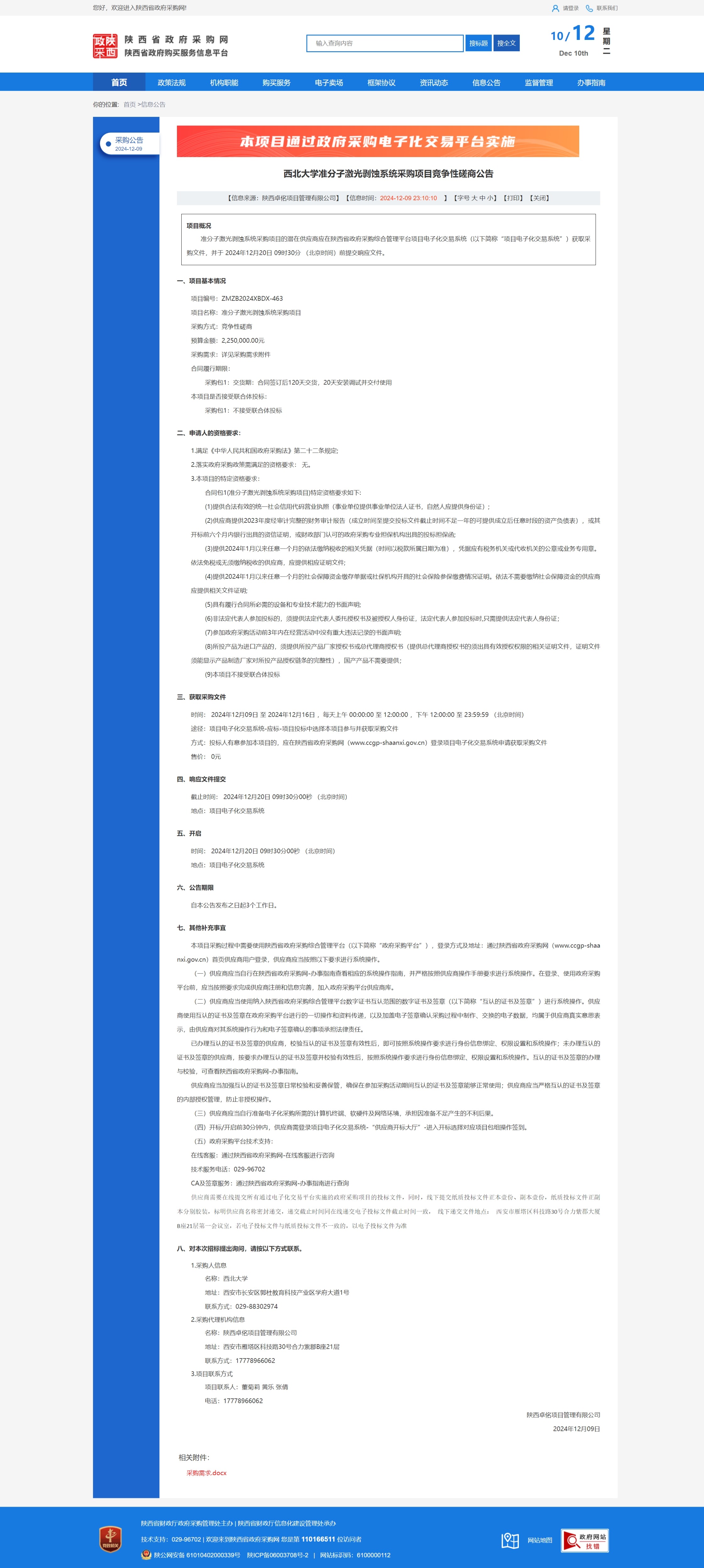 米兰买球准分子激光剥蚀系统采购项目竞争性磋商公告 作者: 编辑:薛利娟 时间:2024-12-10 原公告链接:https://www.ccgp-shaanxi.gov.cn/freecms/site/shaanxi/ggxx/info/2024/8a69c44e9218572b0193abf2be5c4250.html?noticeType=001016¬iceId=4c4263c6-b641-11ef-8063-08c0eb20c666