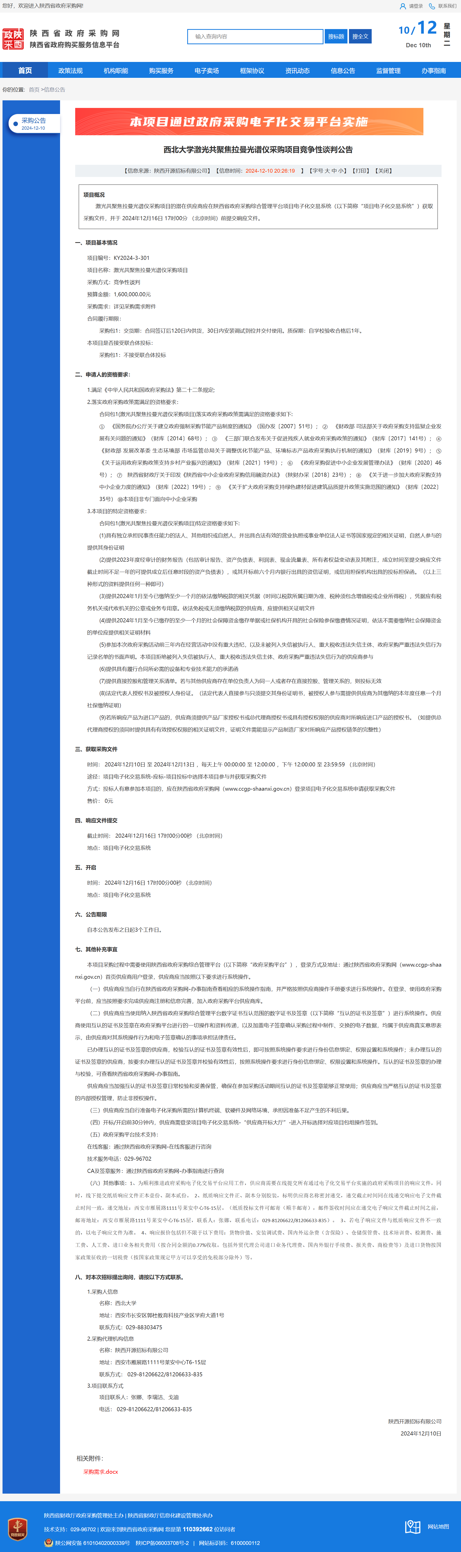 米兰买球激光共聚焦拉曼光谱仪采购项目竞争性谈判公告 作者:采购与招标办公室 编辑: 时间:2024-12-10 原公告链接:https://www.ccgp-shaanxi.gov.cn/freecms/site/shaanxi/ggxx/info/2024/8a69c5a59218576d0193b081eb986c20.html?noticeType=001013¬iceId=937b25d9-b6f3-11ef-8063-08c0eb20c666