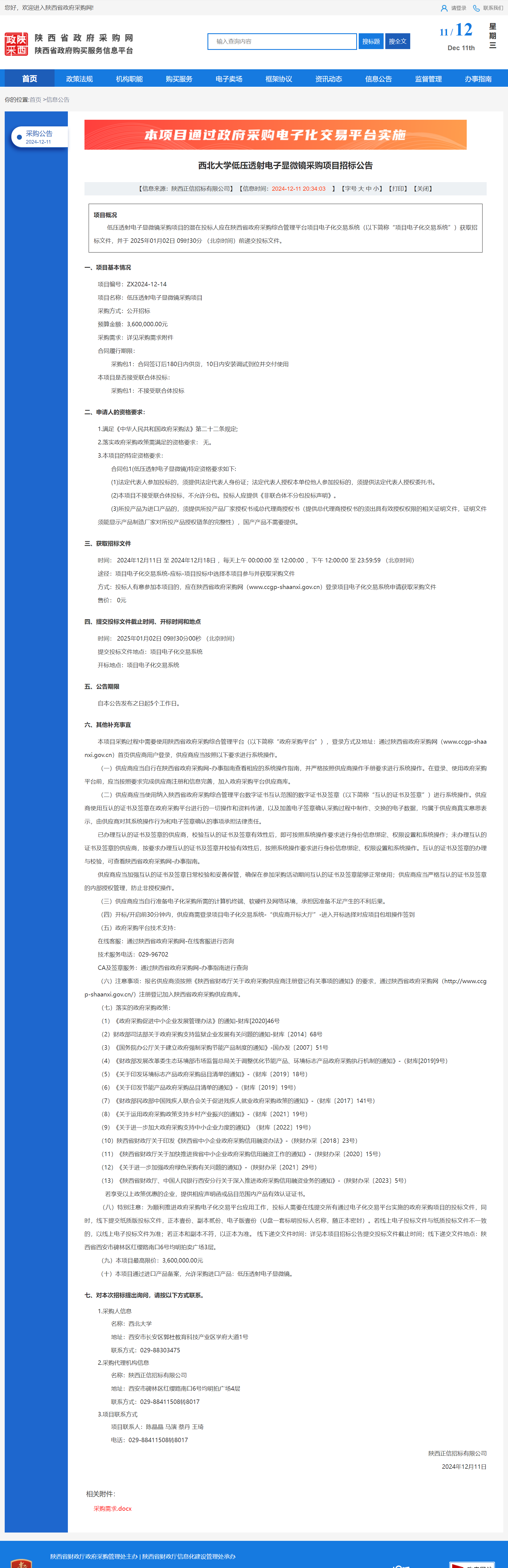 米兰买球低压透射电子显微镜采购项目招标公告 作者:采购与招标办公室 编辑: 时间:2024-12-11 原公告链接:https://www.ccgp-shaanxi.gov.cn/freecms/site/shaanxi/ggxx/info/2024/8a69c251921857370193b58a2eef18ef.html?noticeType=001011¬iceId=d31c6b03-b7bd-11ef-8063-08c0eb20c666