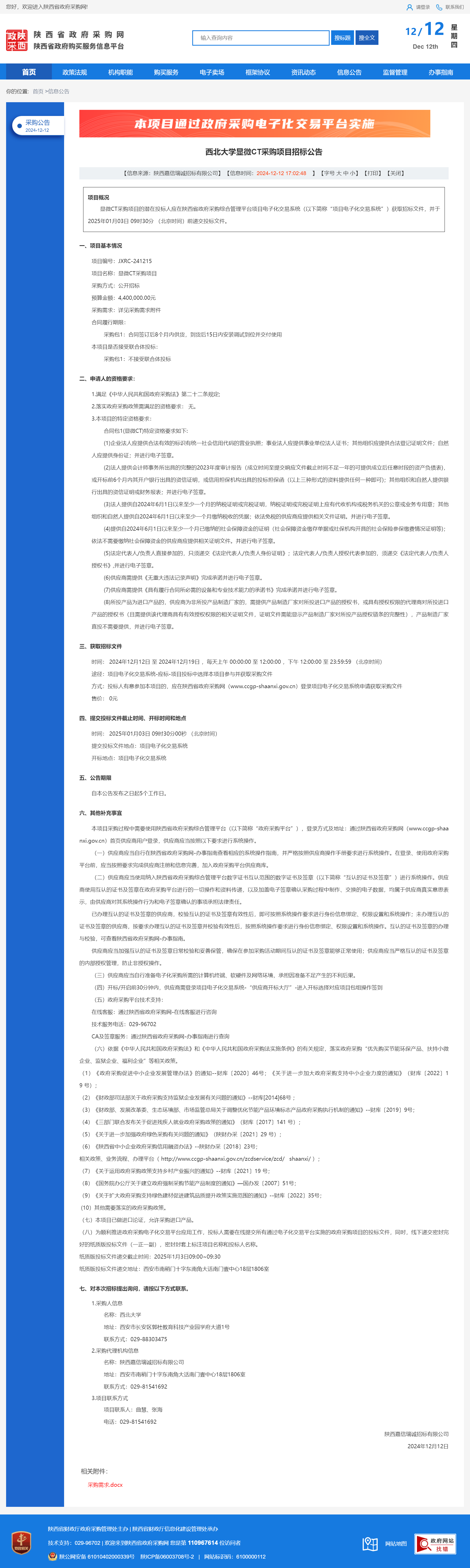 米兰买球显微CT采购项目招标公告 作者:采购与招标办公室 编辑: 时间:2024-12-12 原公告链接:https://www.ccgp-shaanxi.gov.cn/freecms/site/shaanxi/ggxx/info/2024/8a69c5a59218576d0193ba1292507a9d.html?noticeType=001011¬iceId=7add7000-b869-11ef-8063-08c0eb20c666