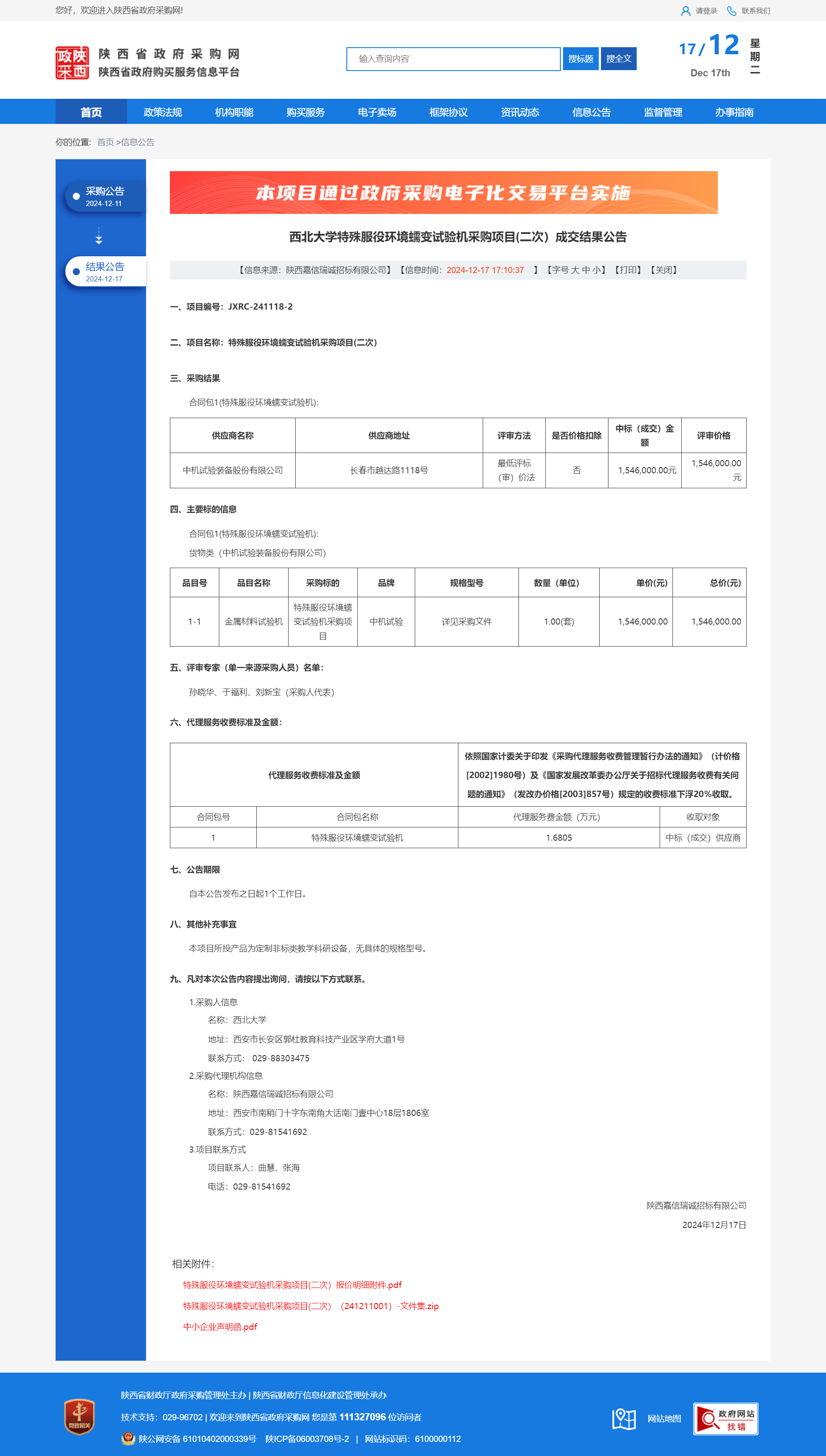 米兰买球特殊服役环境蠕变试验机采购项目(二次)成交结果公告 作者:采购与招标办公室 编辑: 时间:2024-12-17 原公告链接:https://www.ccgp-shaanxi.gov.cn/freecms/site/shaanxi/ggxx/info/2024/8a69c251921857370193d3cba5716502.html?noticeType=001023¬iceId=69320abb-bc58-11ef-8063-08c0eb20c666