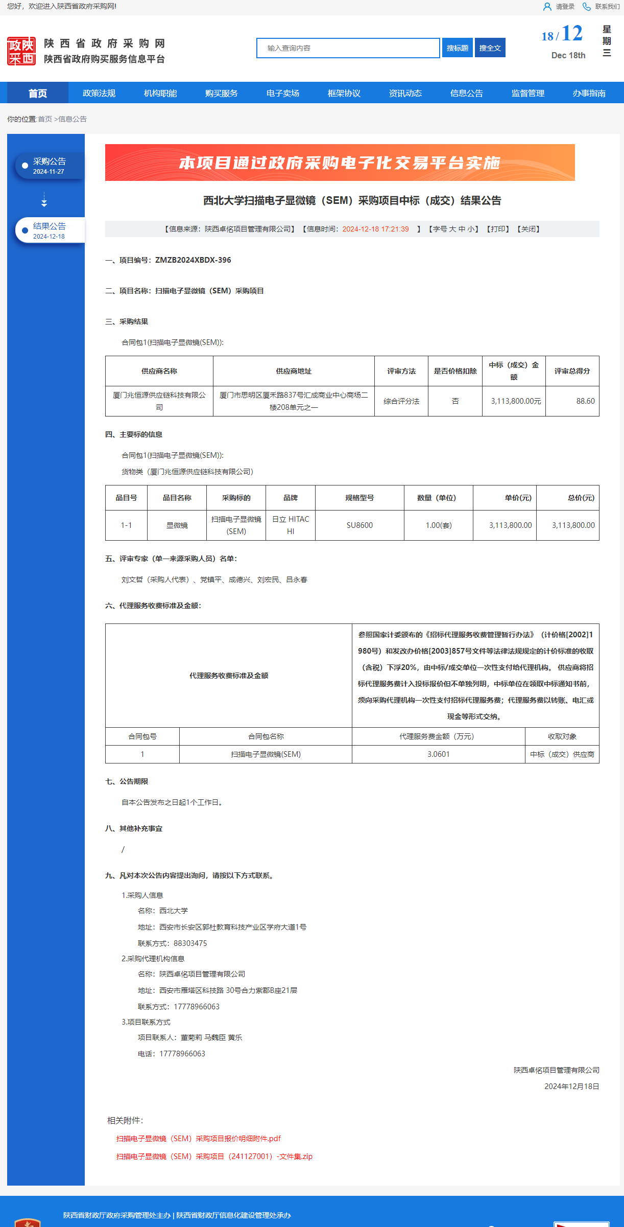 米兰买球扫描电子显微镜(SEM)采购项目中标(成交)结果公告 作者:采购与招标办公室 编辑: 时间:2024-12-18 原公告链接:https://www.ccgp-shaanxi.gov.cn/freecms/site/shaanxi/ggxx/info/2024/8a69c95d921859f00193d90183470ad8.html?noticeType=001021¬iceId=1e709926-bd23-11ef-8063-08c0eb20c666
