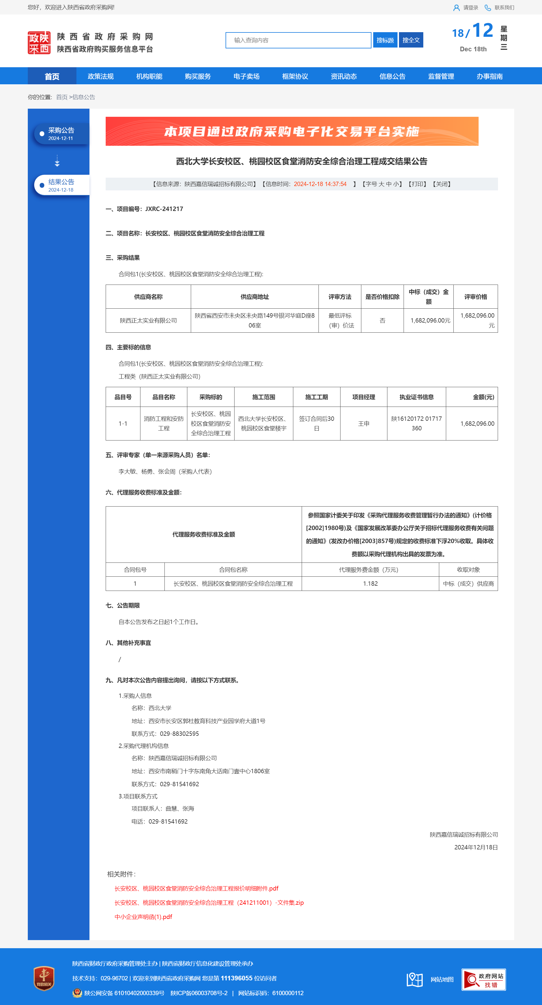 米兰买球长安校区、桃园校区食堂消防安全综合治理工程成交结果公告