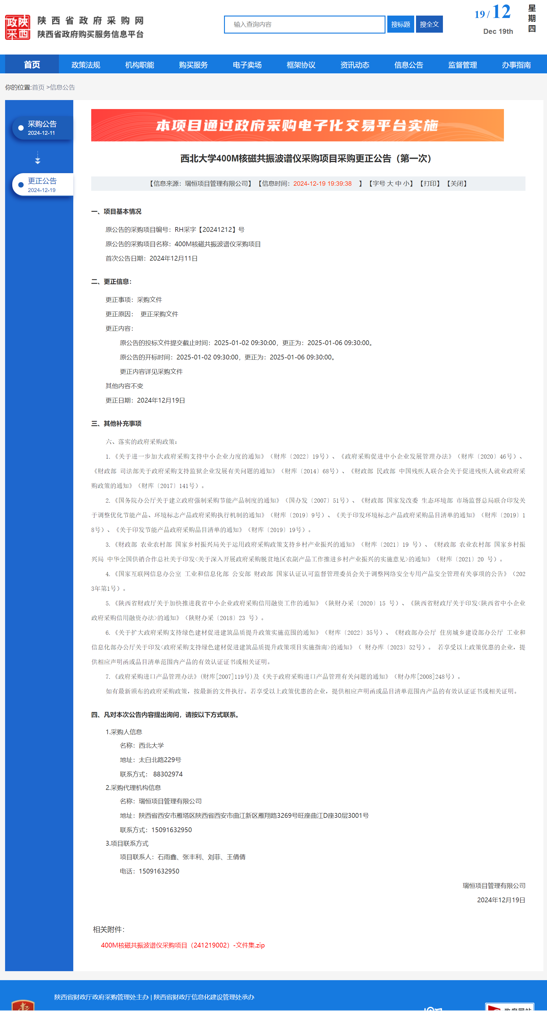 米兰买球400M核磁共振波谱仪采购项目采购更正公告(第一次) 作者:采购与招标办公室 编辑: 时间:2024-12-19 原公告链接:https://www.ccgp-shaanxi.gov.cn/freecms/site/shaanxi/ggxx/info/2024/8a69c44e9218572b0193dea841d35edb.html?noticeType=001031¬iceId=90038807-bdff-11ef-8063-08c0eb20c666