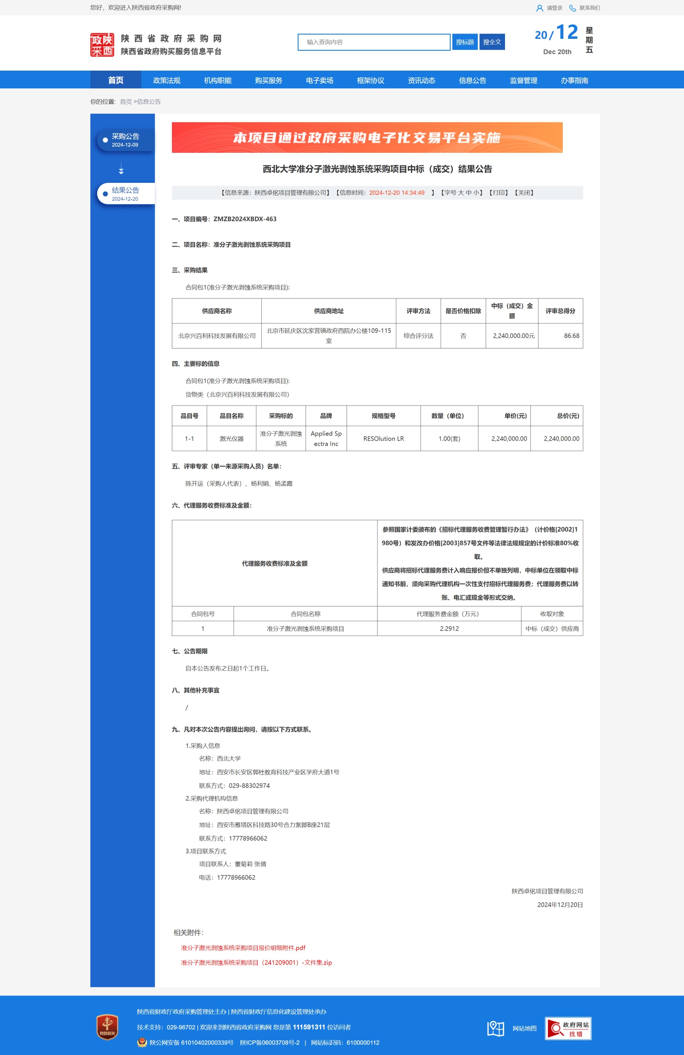 米兰买球准分子激光剥蚀系统采购项目中标(成交)结果公告 作者: 编辑:薛利娟 时间:2024-12-20 原 原公告链接:https://www.ccgp-shaanxi.gov.cn/freecms/site/shaanxi/ggxx/info/2024/8a69c44e9218572b0193e29f87ef1ad0.html?noticeType=001026¬iceId=25ebb152-be9e-11ef-8063-08c0eb20c666