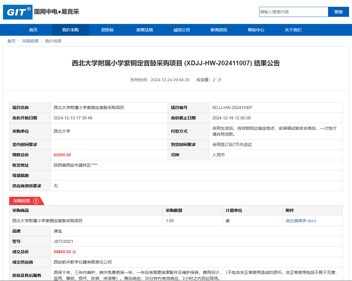 米兰买球附属小学紫铜定音鼓采购项目(XDJJ-HW-202411007)竞价结果公告 作者:采购与招标办公室 编辑: 时间:2024-12-24 原公告链接:https://www.ejingcai.com.cn/site/bidding/detail/16145