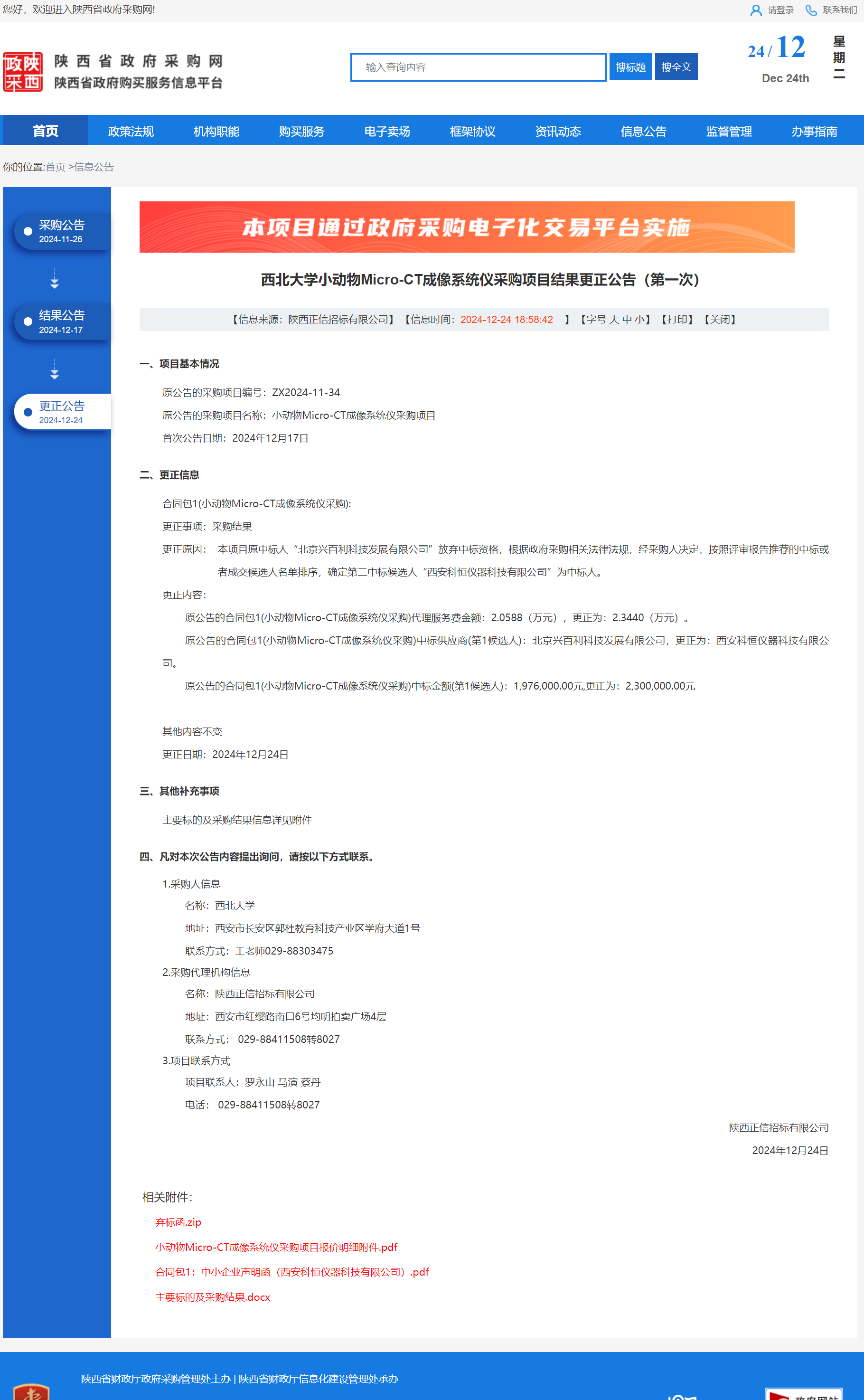 米兰买球小动物Micro-CT成像系统仪采购项目结果更正公告(第一次) 作者:采购与招标办公室 编辑: 时间:2024-12-24 原公告链接:https://www.ccgp-shaanxi.gov.cn/freecms/site/shaanxi/ggxx/info/2024/8a69c251921857370193f82a5d426362.html?noticeType=001032¬iceId=aebd6ced-c1e7-11ef-8063-08c0eb20c666