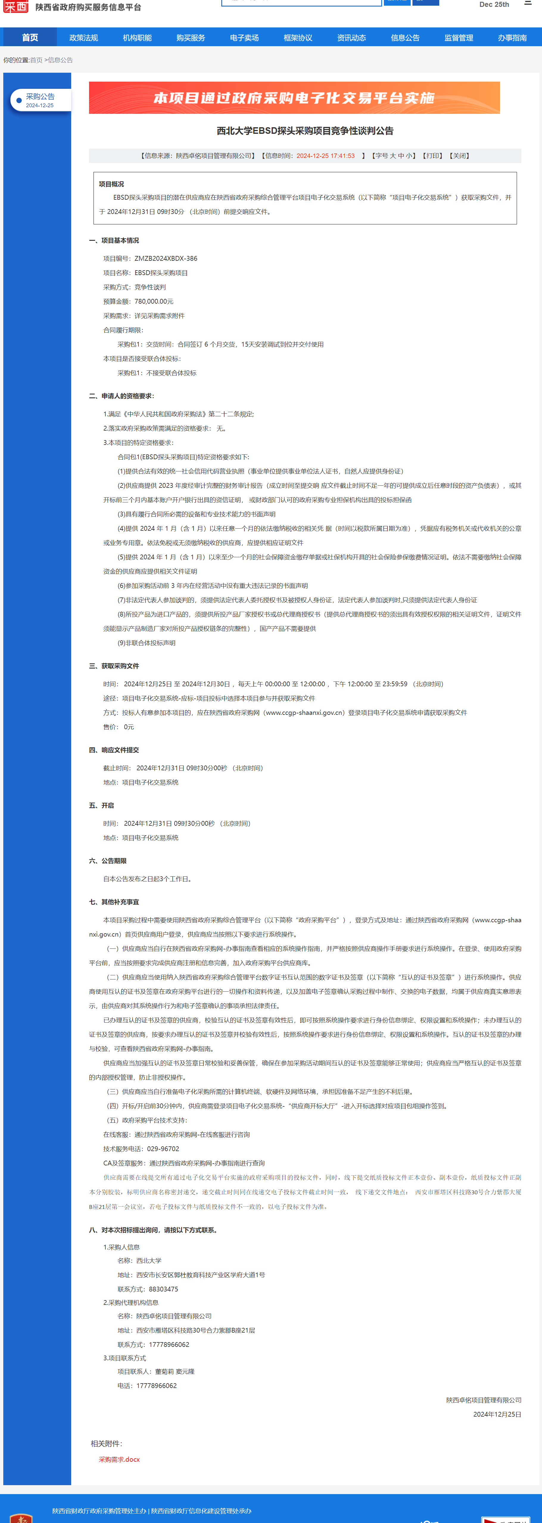 原公告链接:https://www.ccgp-shaanxi.gov.cn/freecms/site/shaanxi/ggxx/info/2024/8a69c251921857370193fd2ded71224e.html?noticeType=001013&noticeId=1e749fa7-c2a6-11ef-8063-08c0eb20c666