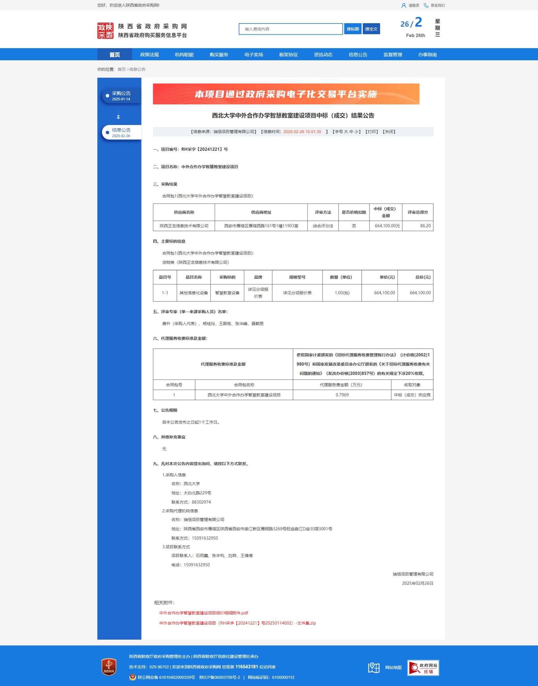 米兰买球中外合作办学智慧教室建设项目中标(成交)结果公告 作者: 编辑:采购与招标办公室 时间:2025-02-26 原公告链接:https://www.ccgp-shaanxi.gov.cn/freecms/site/shaanxi/ggxx/info/2025/8a69c07394fffbb3019540f217e8256e.html?noticeType=001021¬iceId=47d2d283-f411-11ef-8063-08c0eb20c666