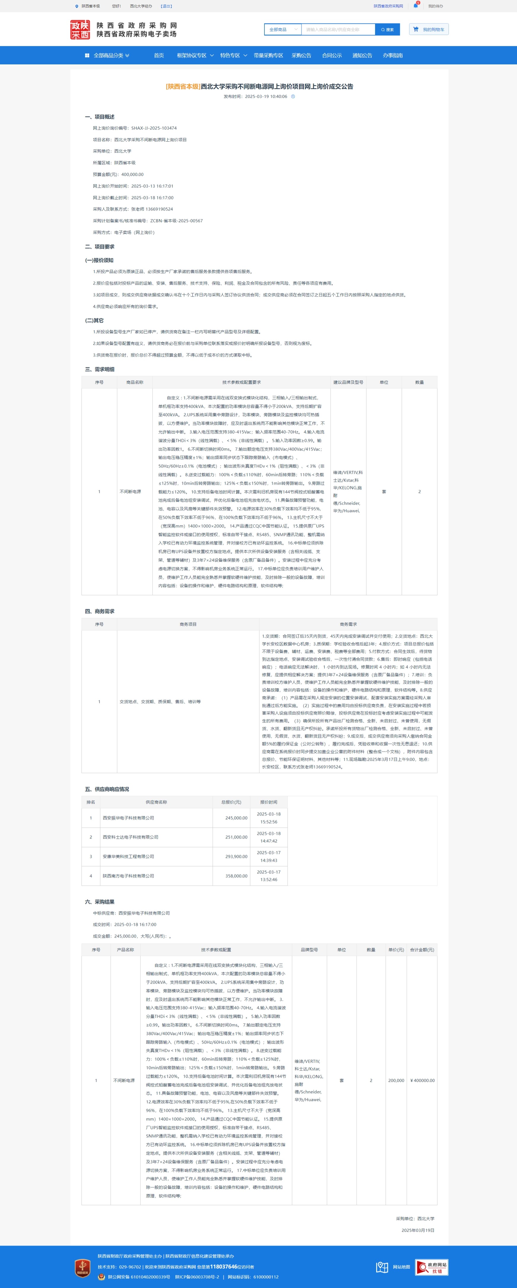 米兰买球采购不间断电源网上询价项目网上询价成交公告