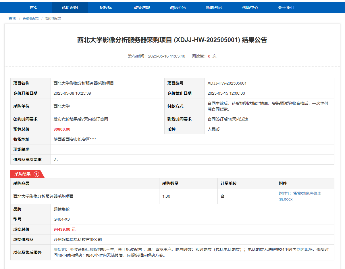 米兰买球影像分析服务器采购项目(XDJJ-HW-202505001)竞价结果公告 作者:采购与招标办公室 编辑: 时间:2025-05-16 原公告链接:https://www.ejingcai.com.cn/site/bidding/detail/18256