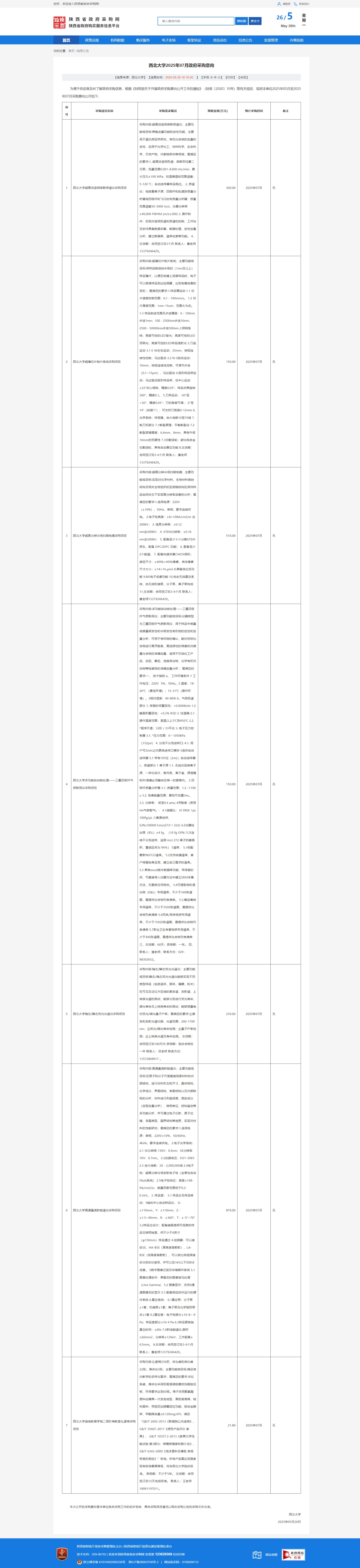 米兰买球2025年07月政府采购意向(化工学院等) 作者: 编辑:采购与招标办公室 时间:2025-05-26 原公告链接:https://www.ccgp-shaanxi.gov.cn/freecms/site/shaanxi/ggxx/info/2025/8a69c8d196ce440a01970b48aca86f44.html?noticeType=59¬iceId=959b39bb-3a0b-11f0-8063-08c0eb20c666