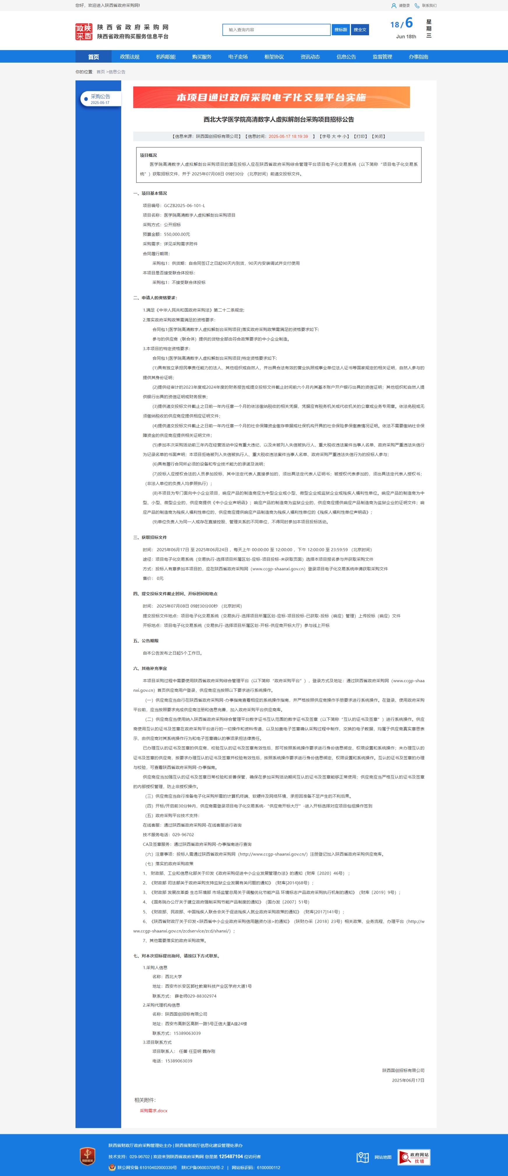 原公告链接:https://www.ccgp-shaanxi.gov.cn/freecms/site/shaanxi/ggxx/info/2025/8a69c0a29672060001977d5b25b77c33.html?noticeType=001011&noticeId=8a96e29e-4b66-11f0-8063-08c0eb20c666