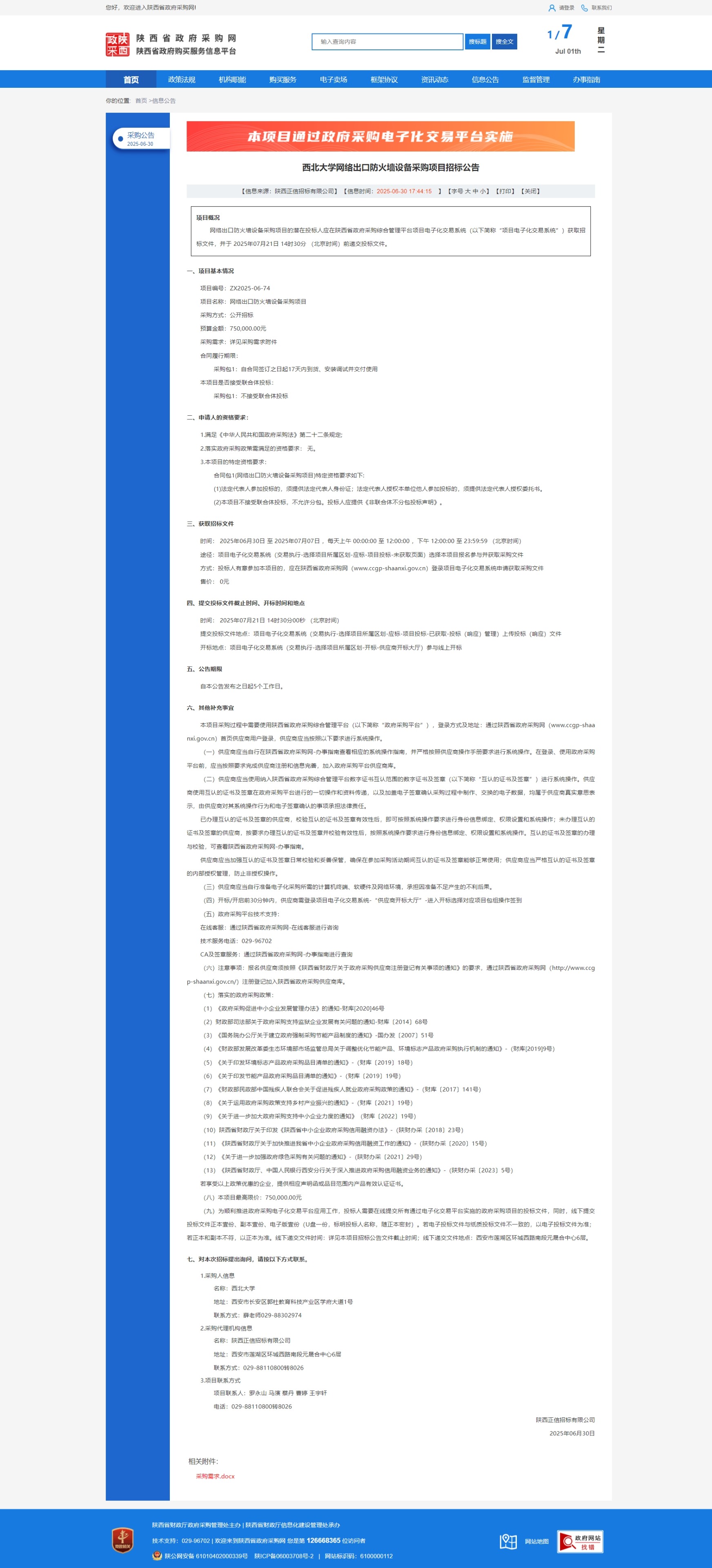 米兰买球网络出口防火墙设备采购项目招标公告 作者: 编辑:采购与招标办公室 时间:2025-07-01 原公告链接:https://www.ccgp-shaanxi.gov.cn/freecms/site/shaanxi/ggxx/info/2025/8a69c2ef97af7dd30197c01b7ca54817.html?noticeType=001011¬iceId=c6225ff7-5598-11f0-8063-08c0eb20c666