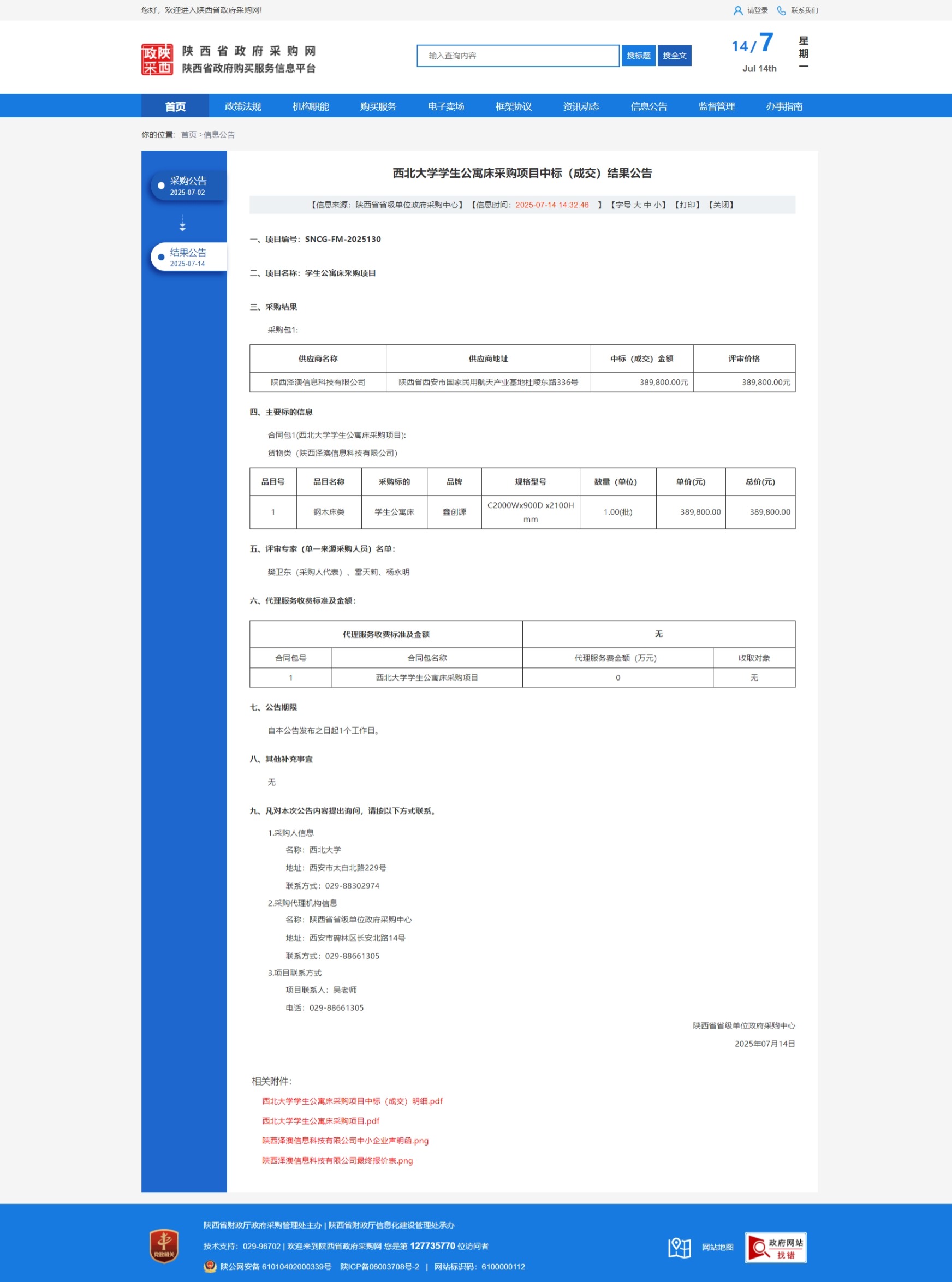 米兰买球学生公寓床采购项目中标(成交)结果公告 作者: 编辑:采购与招标办公室 时间:2025-07-14 原公告链接:https://www.ccgp-shaanxi.gov.cn/freecms/site/shaanxi/ggxx/info/2025/8a69c1d397de6c600198068c5fee4d43.html?noticeType=001023¬iceId=5dd2ddc8-607e-11f0-8063-08c0eb20c666