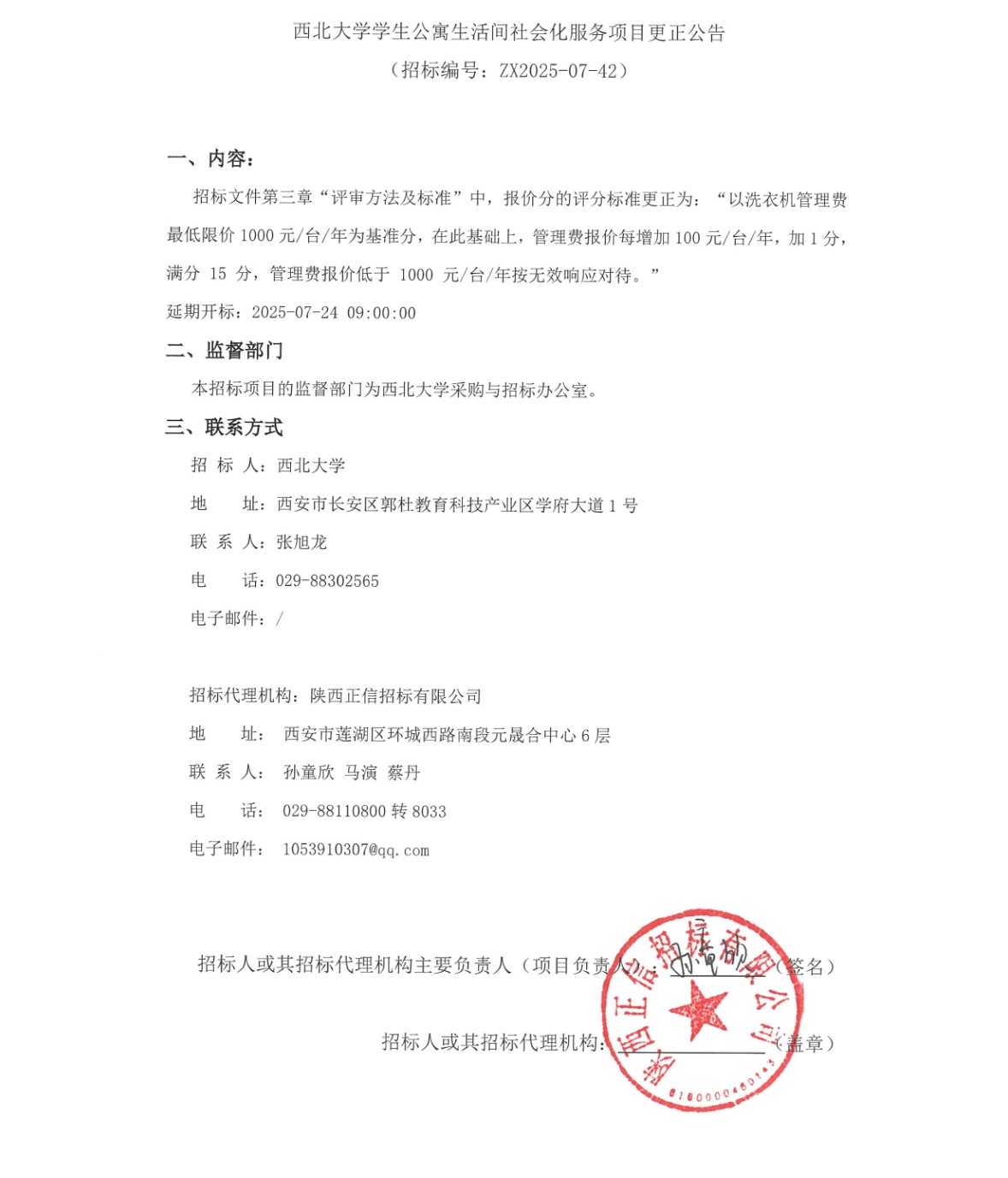 米兰买球学生公寓生活间社会化服务项目更正公告