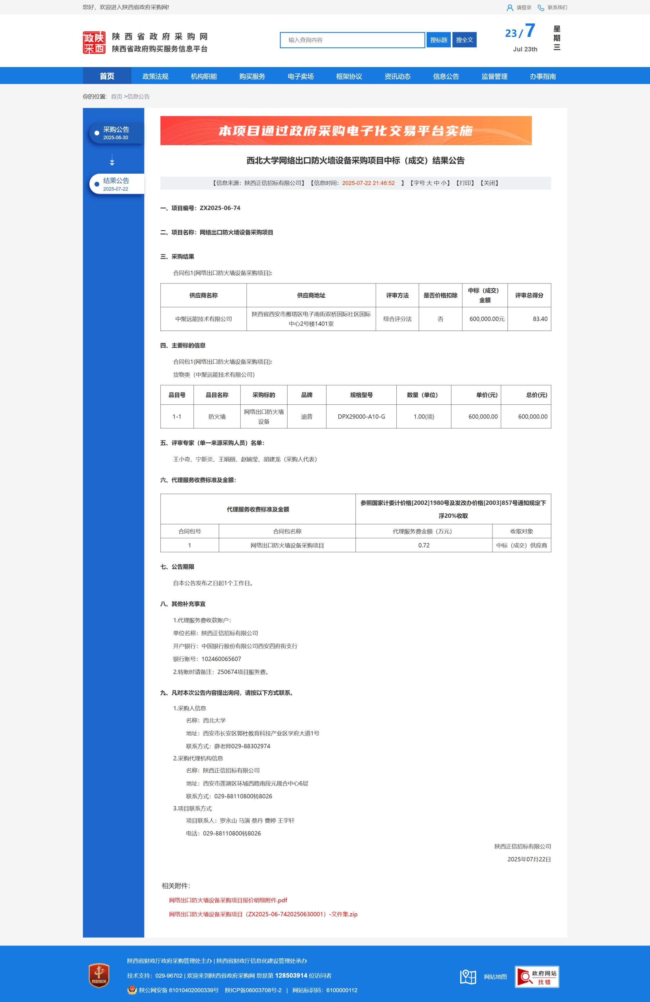 米兰买球网络出口防火墙设备采购项目中标(成交)结果公告 作者: 编辑:采购与招标办公室 时间:2025-07-23 原公告链接:https://www.ccgp-shaanxi.gov.cn/freecms/site/shaanxi/ggxx/info/2025/8a69c8f397dc839d01983234be5949f6.html?noticeType=001021¬iceId=5985f208-6704-11f0-8063-08c0eb20c666